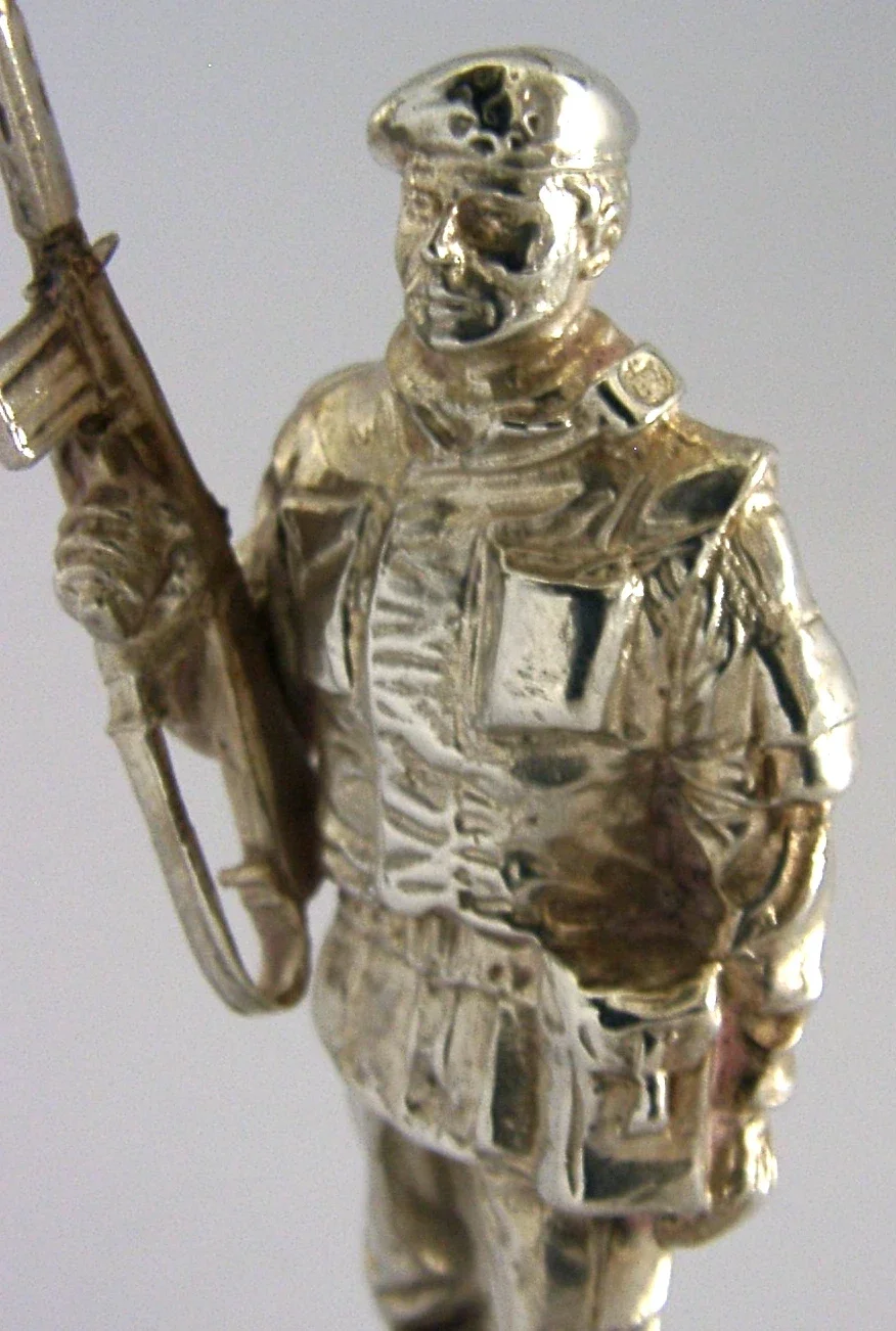 182g CAST STERLING SILVER SOLDIER FIGURE 1976 CHESHIRE REGIMENT MILITARY