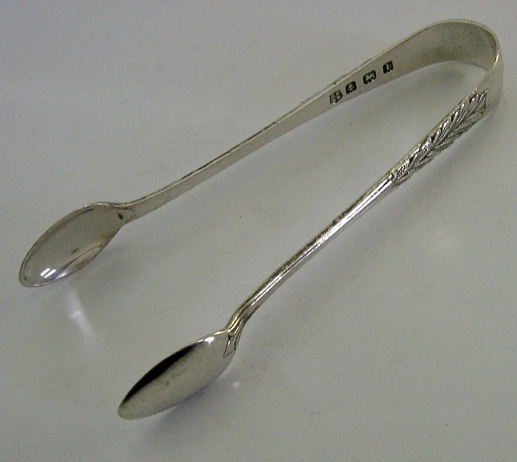 PRETTY 1910 STERLING SILVER ENGLISH SUGAR TONGS ANTIQUE