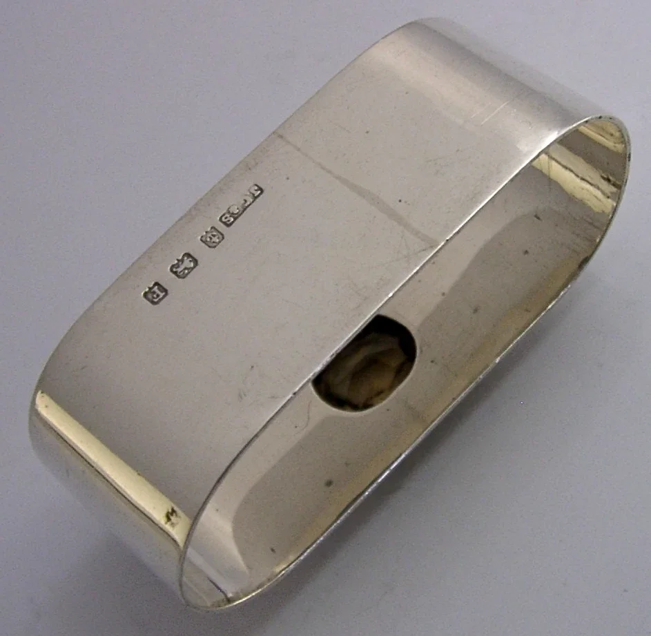 A superb antique solid sterling silver napkin ring. It is hallmarked for Birmingham 1930 with the maker being Joseph Cook & Son. It has been superbly made being pierced and set with an citrine. It is in super condition being free from dings splits distortions and repairs. It measures approx. 2.5 inches (6cm) across by over 1 inch (2.7cm) wide by over 0.75 inch (2.1cm) tall and weighs 24 grams. A very nice quality piece.