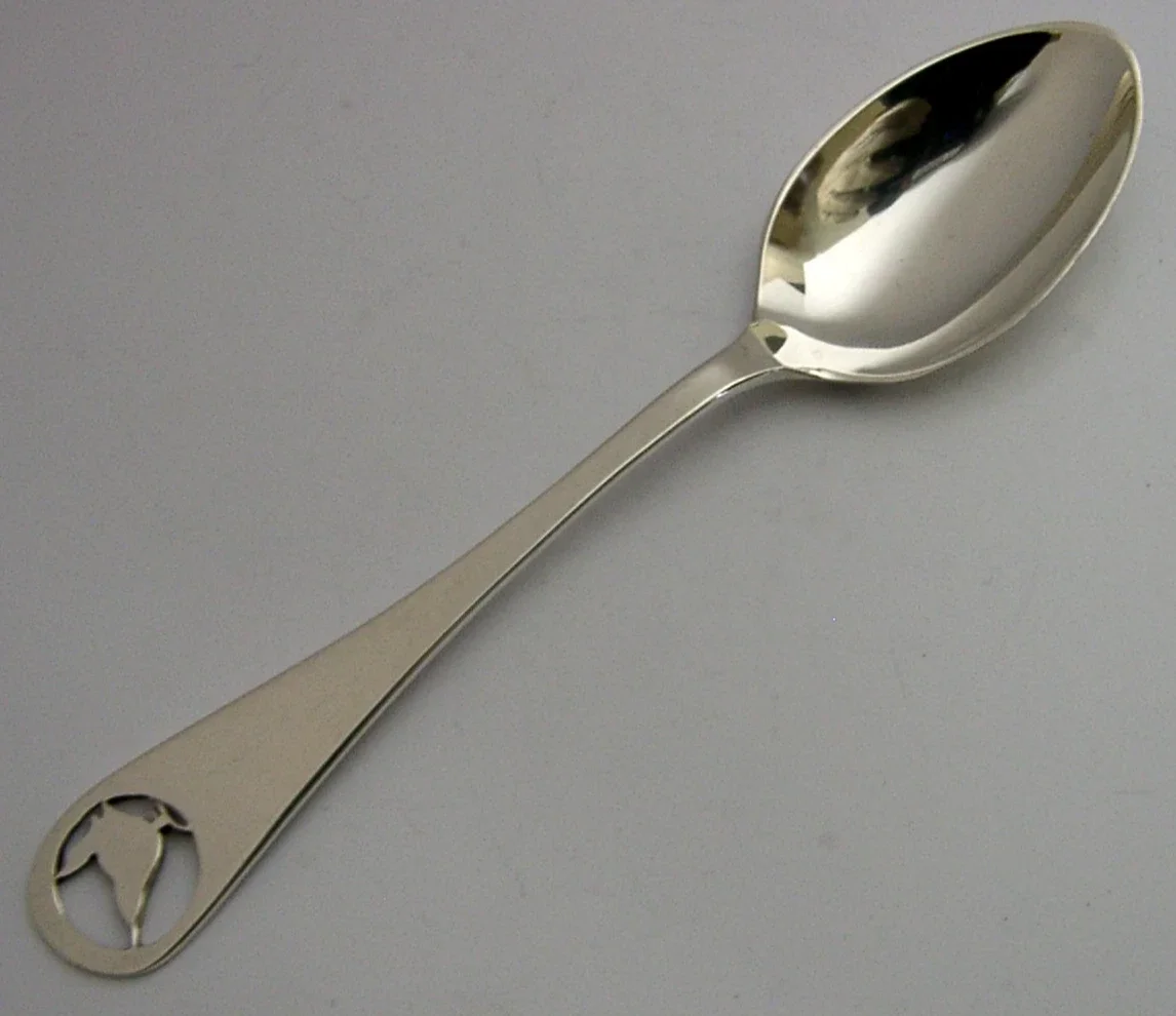 A pretty English solid sterling silver bird spoon. It is hallmarked for Birmingham 1977 with the makers marks being that of Susan M Whitehead. It has been nicely design with the terminal being in the form of a wren bird. It is in super condition being free from dings splits distortions and repairs. It measures approx. 4.5 inches (11.8cm) long by 1 inch (2.6cm) wide and weighs 12 grams. A beautiful example.