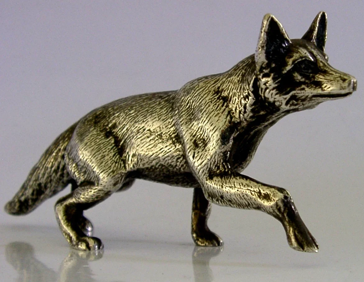 6+ inch BEAUTIFUL SILVER PLATED FOX FIGURE c1950s ANIMAL 364g HUNTING
