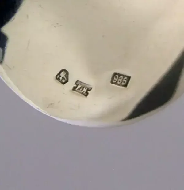 A very interesting Austrian antique solid sterling silver menu holder. It is hallmarked with the 935 standard mark along with the Hoopoe Bird mark used from 1922. It has been superbly designed incorporating a 1764 silver coin. It is in super condition being free from dings splits and repairs, slight push to the base. It measures over 1 inch (2.9cm) across the base by 1.25 inches (3.2cm) tall and weighs 12 grams. A very interesting piece.