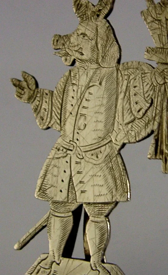 A rare English Victorian antique solid sterling silver menu holder. It is hallmarked for Sheffield 1898 with the maker being Jacob & Ross (Frederick James Ross). It has been superbly designed being in the form of Winchesters Trusty Servant. It is in super condition being free from dings splits and repairs, light scratching. It measures approx. 2.25 inches (5.6cm) tall by over 1 inch (3cm) across the base and weighs 18 grams. A very nice quality piece.