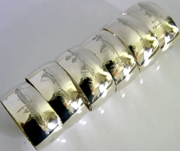 SIX SOLID SILVER NAPKIN RINGS EASTERN IRAQI c1920 112g ANTIQUE