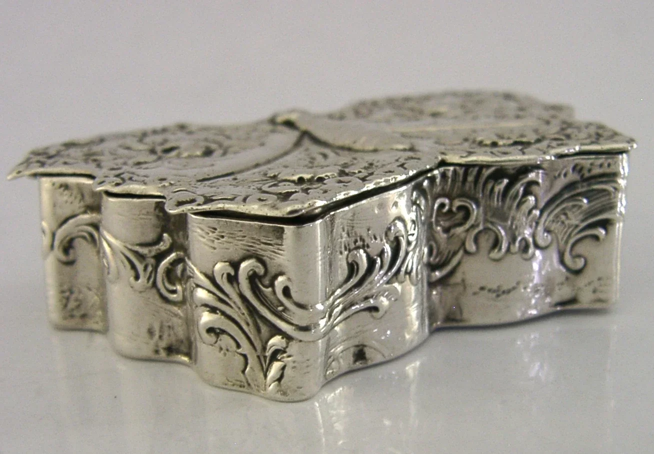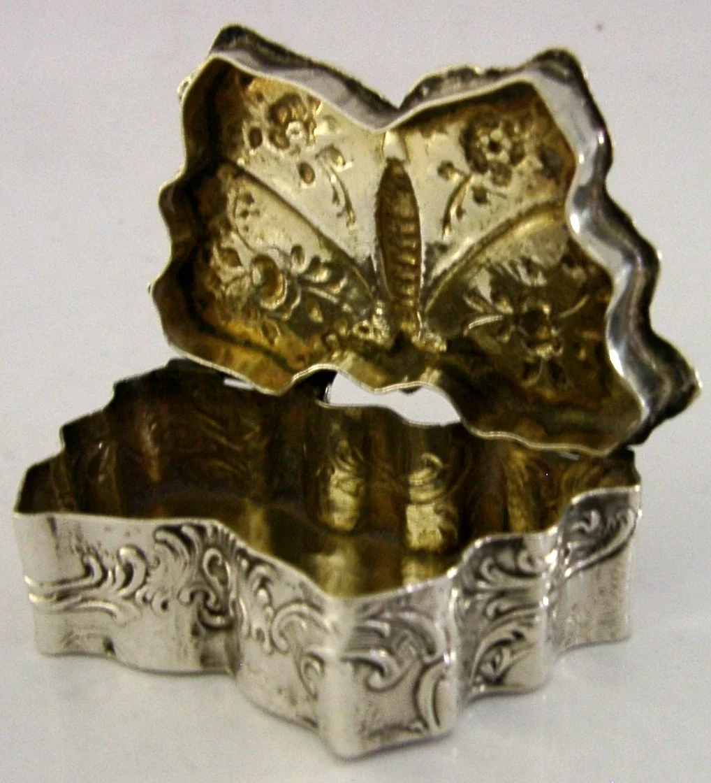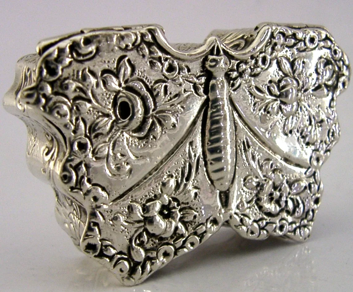 RARE GERMAN HANAU STERLING SILVER BUTTERFLY BOX 1893 ANTIQUE ENGLISH IMPORT