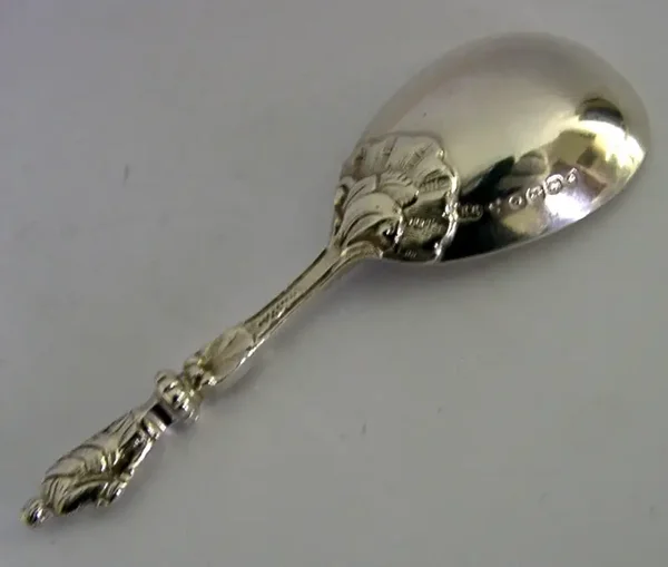 A beautiful English Victorian antique solid sterling silver caddy spoon. It is hallmarked for London 1874 with the maker being Henry Holland (of Holland, Aldwinckle & Slater). It has been superbly made having an apostle terminal. It is in super condition being free from dings splits distortions and repairs. It measures approx. 4 inches (10cm) long by 1.25 inches (3.4cm) wide and weighs 18 grams. A very fine example.