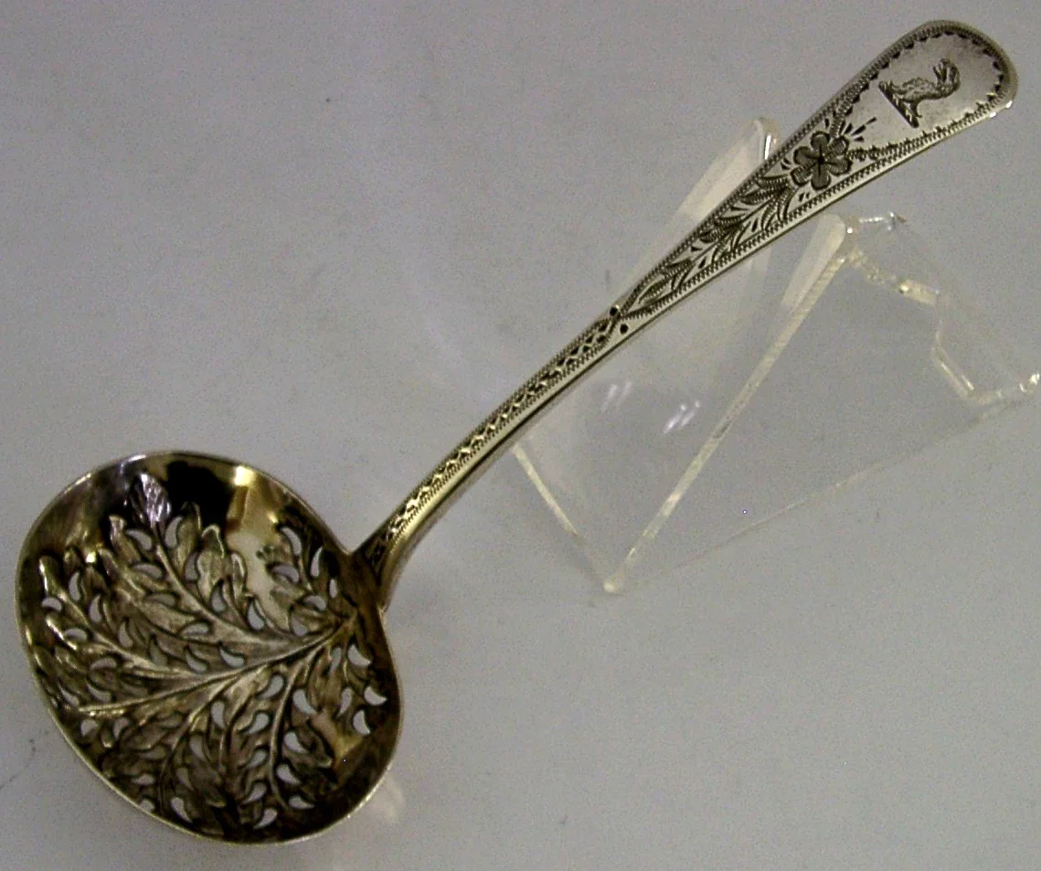 GEORGIAN STERLING SILVER RAWLINSON FAMILY CRESTED SUGAR SIFTER SPOON 1827