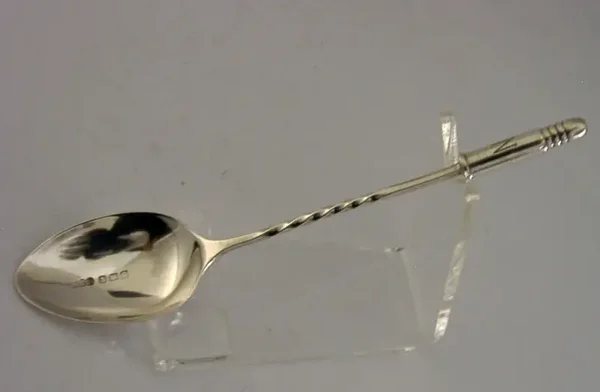 ENGLISH SOLID STERLING SILVER BULLET SPOON 1927 ANTIQUE SHOOTING MILITARY