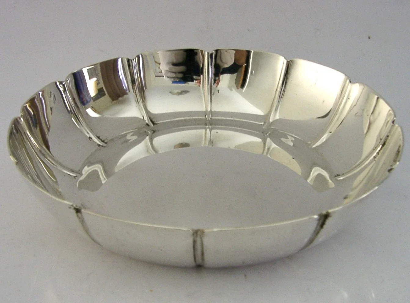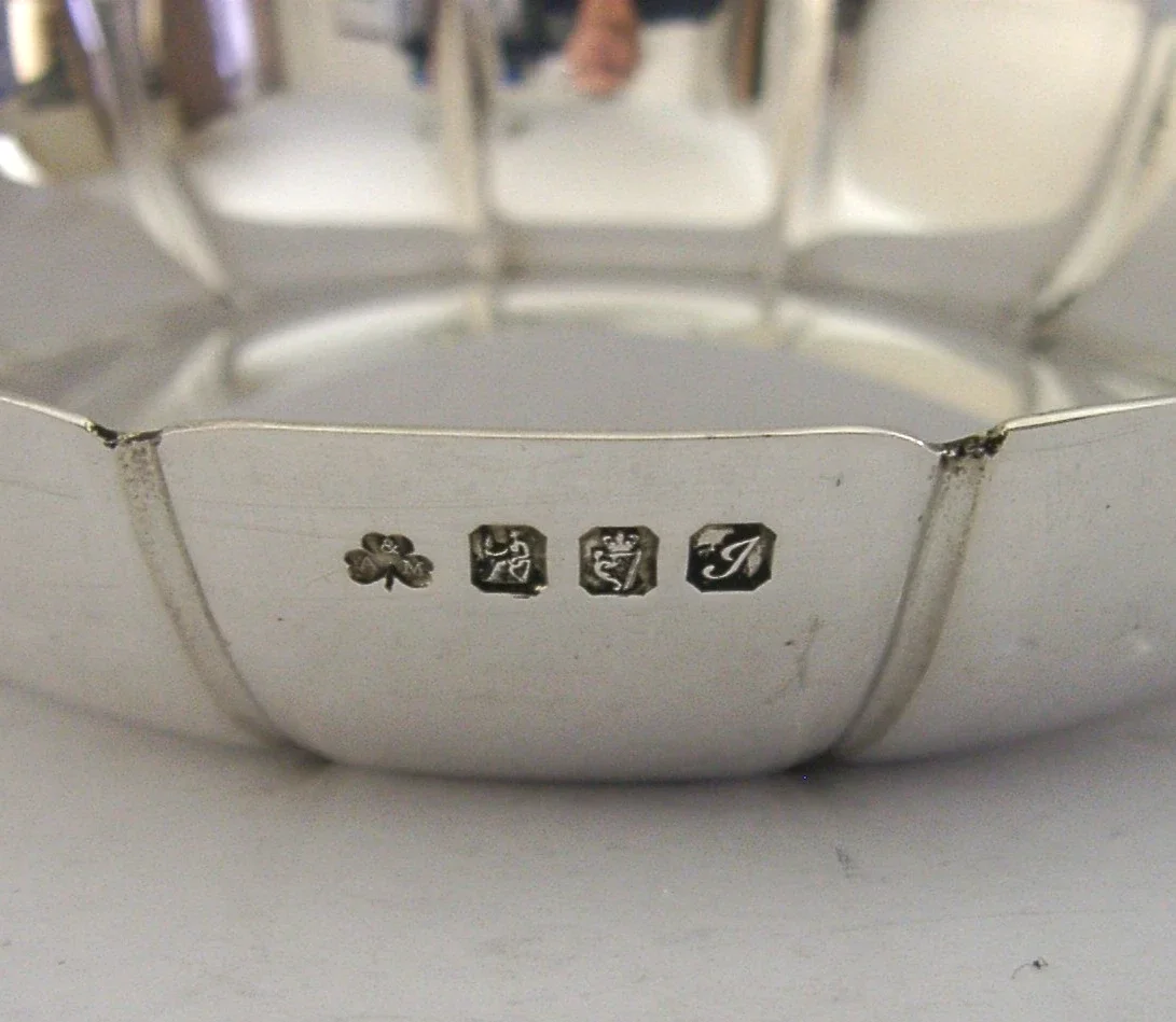 A beautifully top quality Irish solid sterling silver dish. It is hallmarked for Dublin 1995 with the maker being Alwright & Marshall Ltd. It has superbly designed and is in superb condition being free from splits, engravings, and repairs. It measures over 5 inches (13cm) across by 1 inch (2.6cm) tall and weighs 142 grams. A very good quality well made piece.