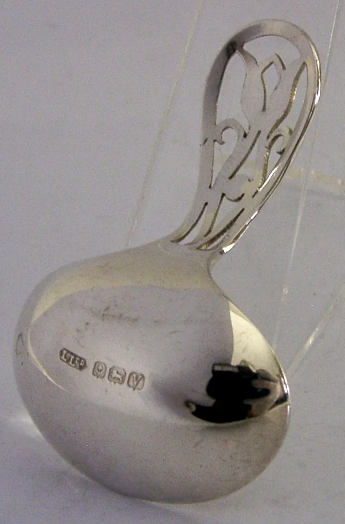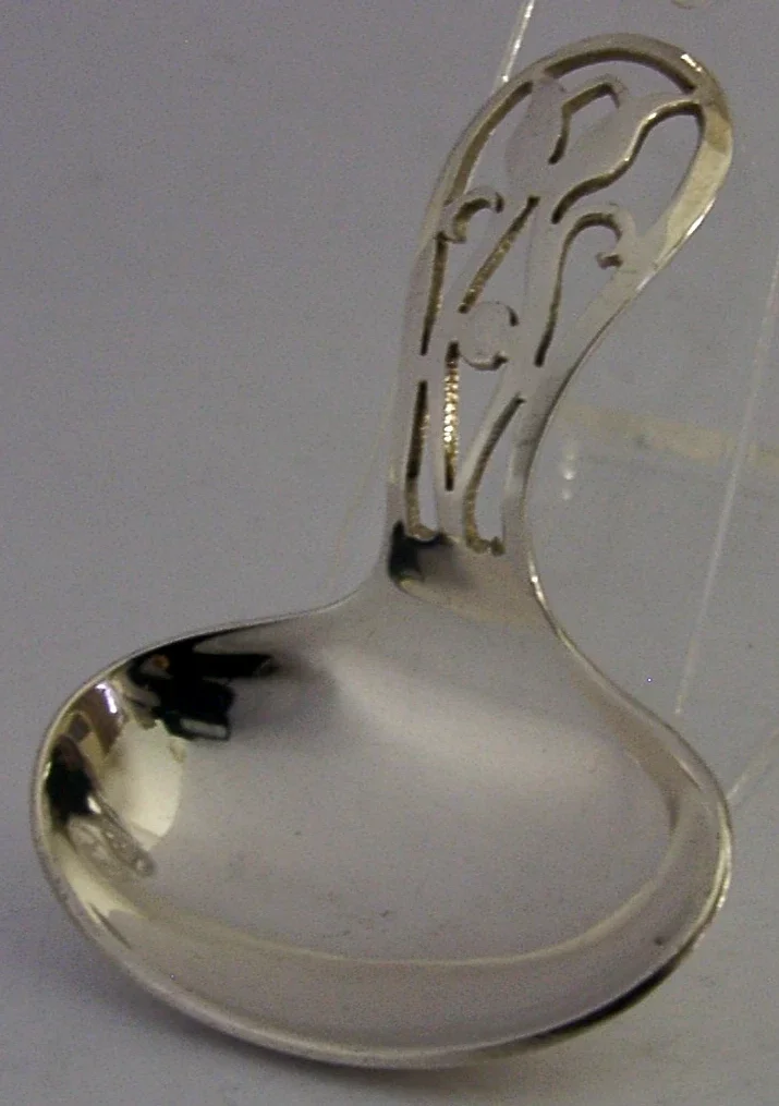 ENGLISH SOLID STERLING SILVER PIERCED TEA CADDY SPOON 1945 ART DECO