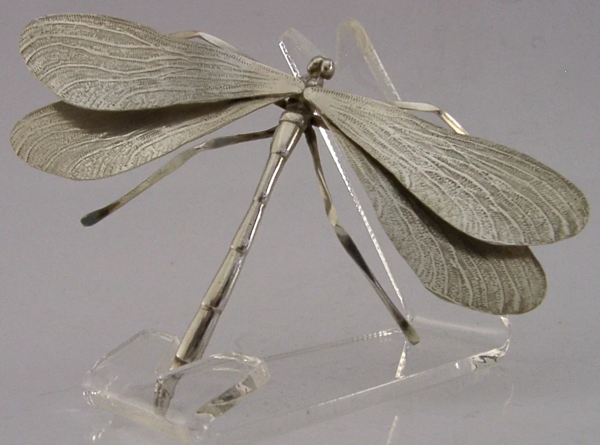 STUNNING ENGLISH STERLING SILVER LIFE SIZE DRAGONFLY 1980 INSET 16g BOXED