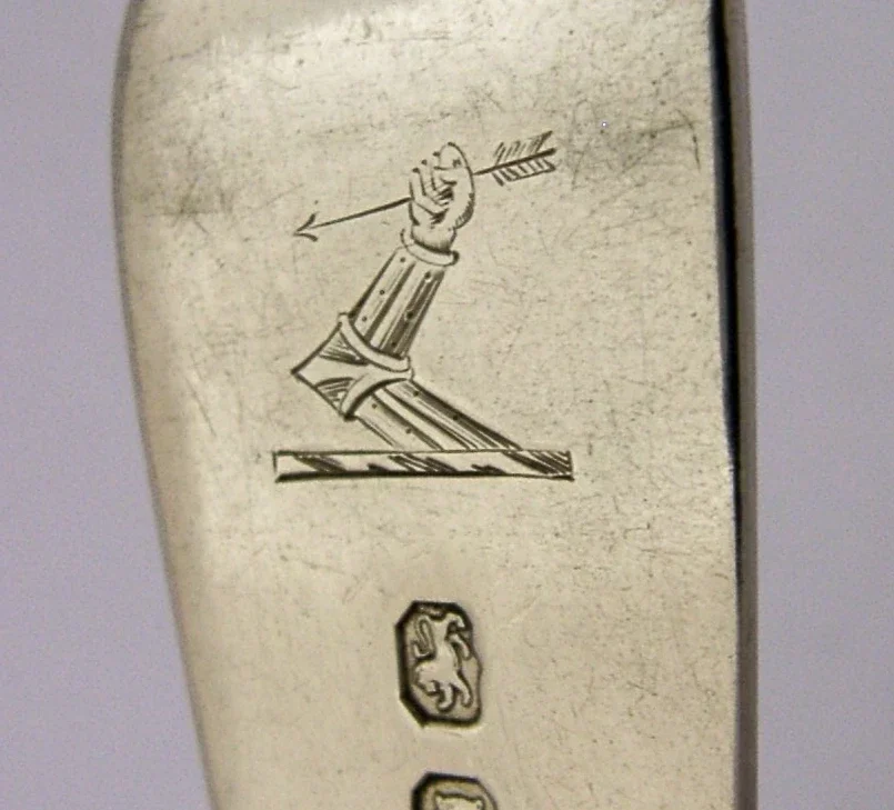 ENGLISH SOLID STERLING SILVER DONALDSON FAMILY CRESTED FORK 1855 ANTIQUE