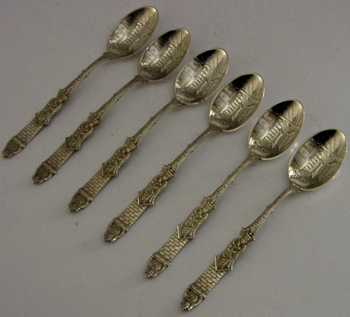 6 VICTORIAN SILVER PLATED SANTA FATHER CHRISTMAS SPOONS c1900 ANTIQUE VICTORIAN
