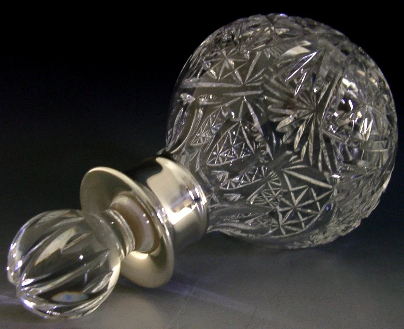 STERLING SILVER TOPPED WHISKY BTANDY NOGGIN DECANTER 1996 BARWARE 3/4 pint