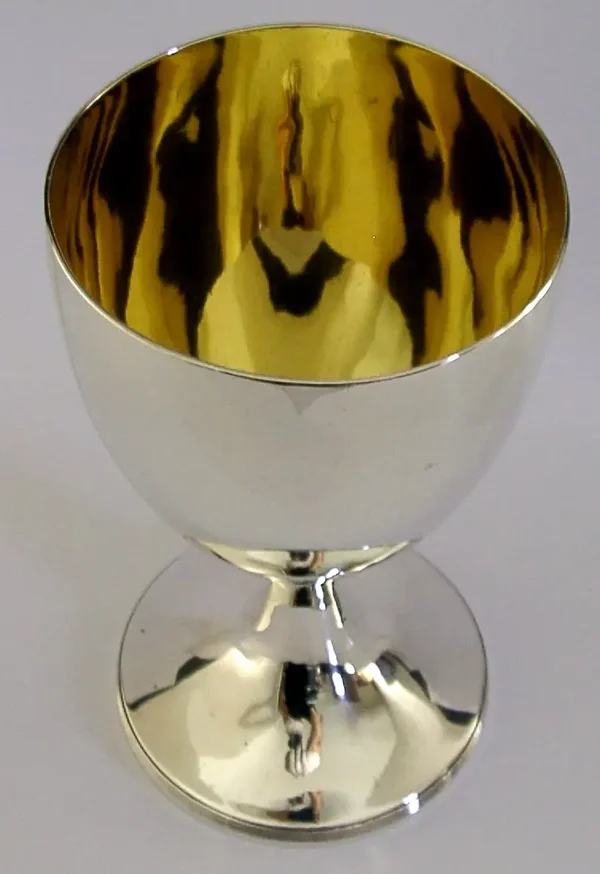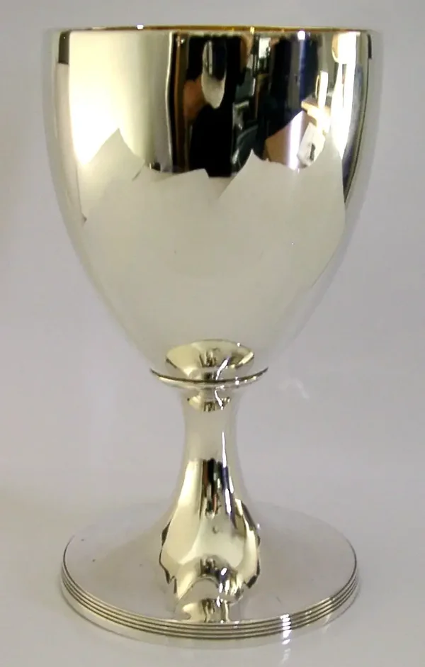 A rare very large Georgian English antique solid sterling silver chalice or goblet. It is hallmarked for London 1800 with the maker being possibly Robert Gaze. It has been superbly designed and the inside of the cup is gilded. It is in superb condition being free from dings splits distortions and repairs, I think the hallmarks must have split the base rim when struck but was put right when returned to the silversmith as their makers marks over strike it (see final photo). It measures over 7 inches (18.3cm) tall by over 4 inches (10.4cm) across the rim by the same across the base and is heavy weighting 372 grams (not weighted). A very good quality well made piece.