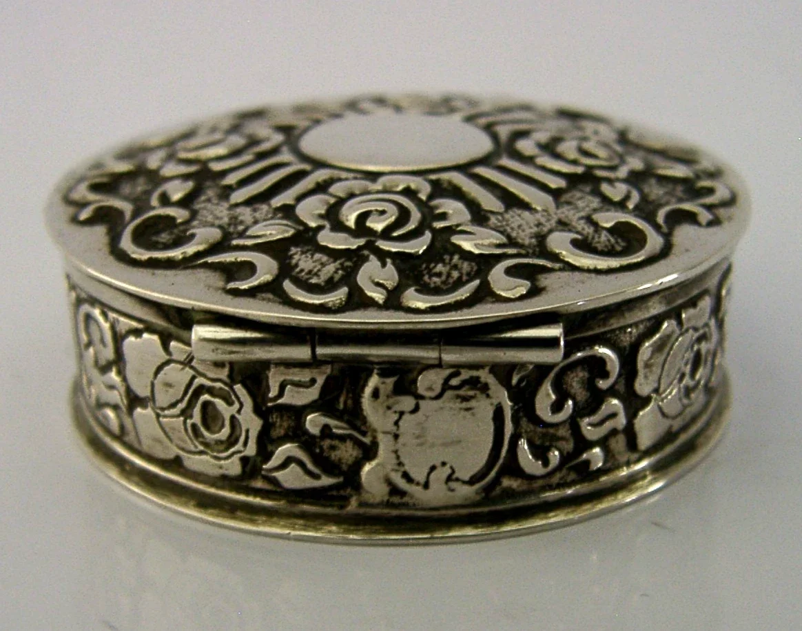 BEAUTIFUL SOLID SILVER ROSES PILL BOX c1950