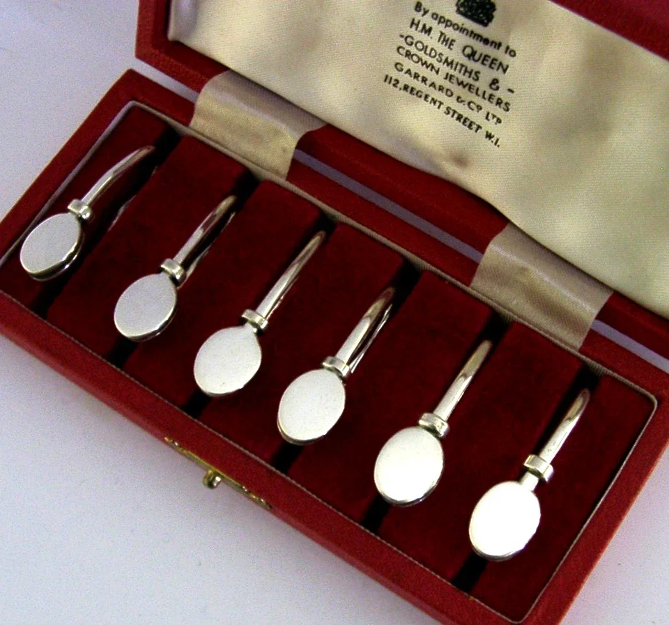RARE 6 CASED GARRARDS STERLING SILVER NAPKIN CLIPS HOLDERS 1986