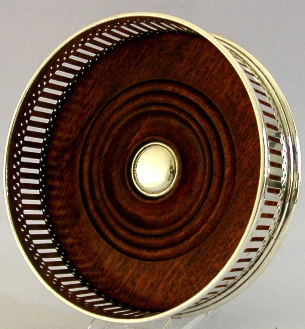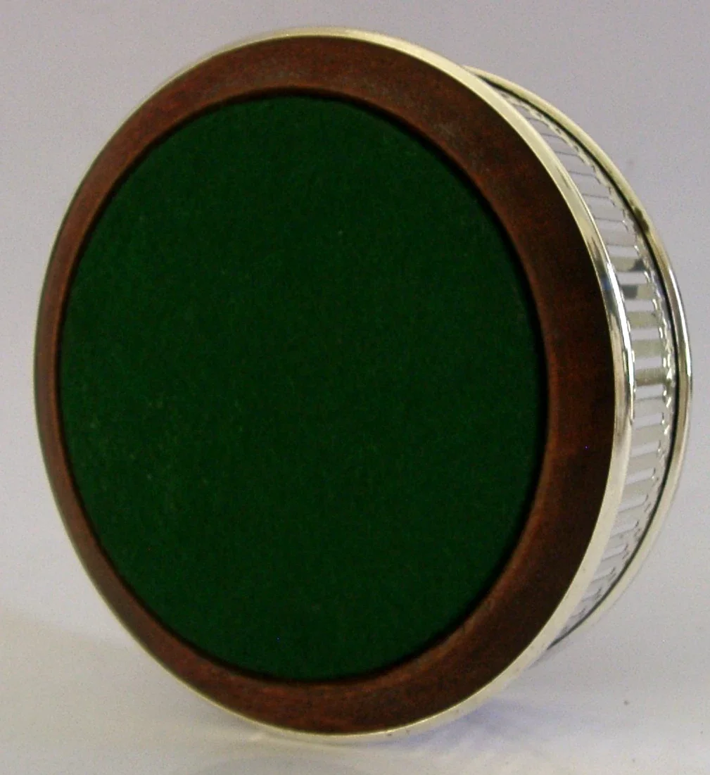 A super quality large English solid sterling silver wine or campaign bottle coaster. It is hallmarked for London 2000 with the maker being MCH. It has been superbly made and is in super condition being free from dings splits and repairs. It measures approx. 5 inches (12.8cm) across by 1.5 inches (4cm) tall and weighs 152 grams. A very nice quality piece.