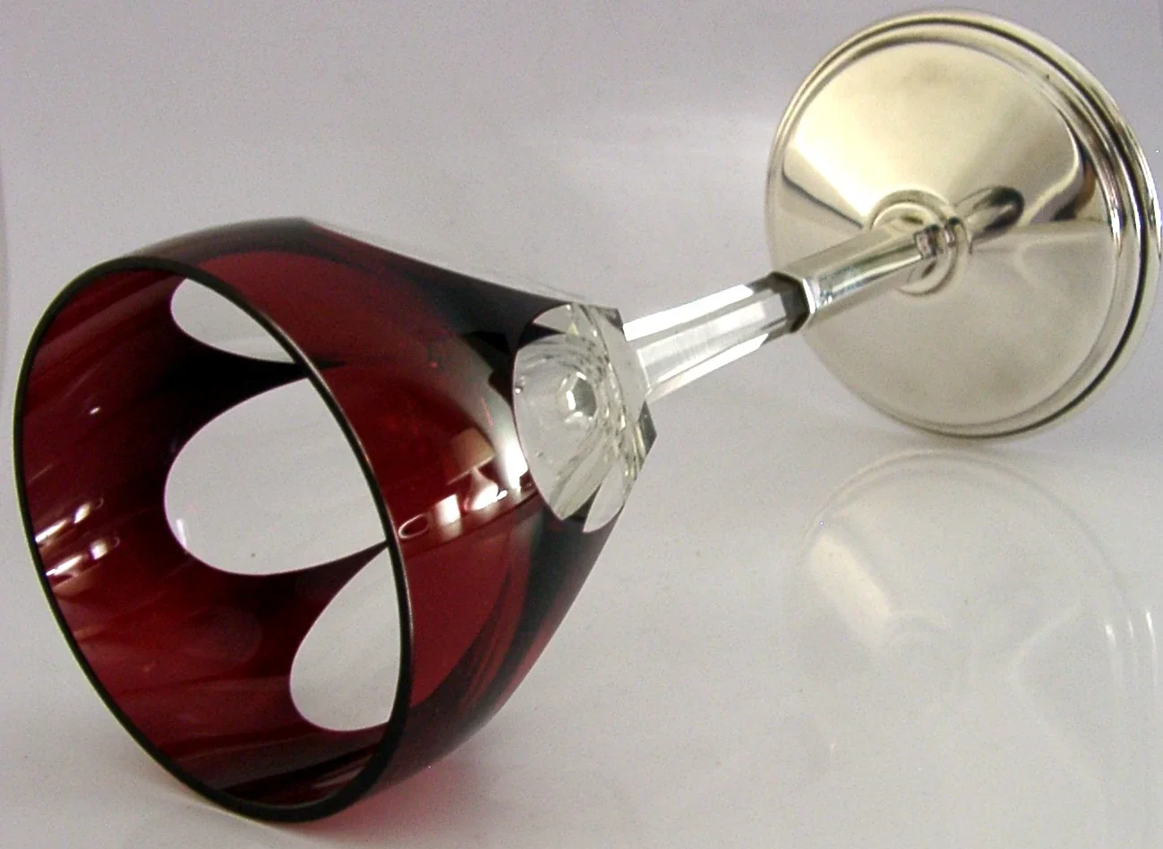 A beautiful large German solid silver and glass wine goblet / chalice. It is hallmarked with the German crescent moon and crown mark, the 925 standard mark along with a makers mark. I would ate it to c1920. It has been superbly designed having a glass bowl and stem and silver base and stem. It is in superb condition being free from dings splits and repairs. It measures approx. 8 inches (20.2cm) tall by over 3 inches (7.7cm) across the cup and over 3.5 inches (9.2cm) across the base and weighs an impressive 246 grams. A beautifully made example.