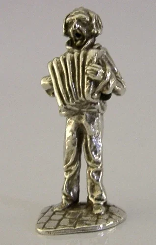 ENGLISH SOLID STERLING SILVER ACCORDION PLAYER FIGURE 1976 CAST MUSICAL 40g
