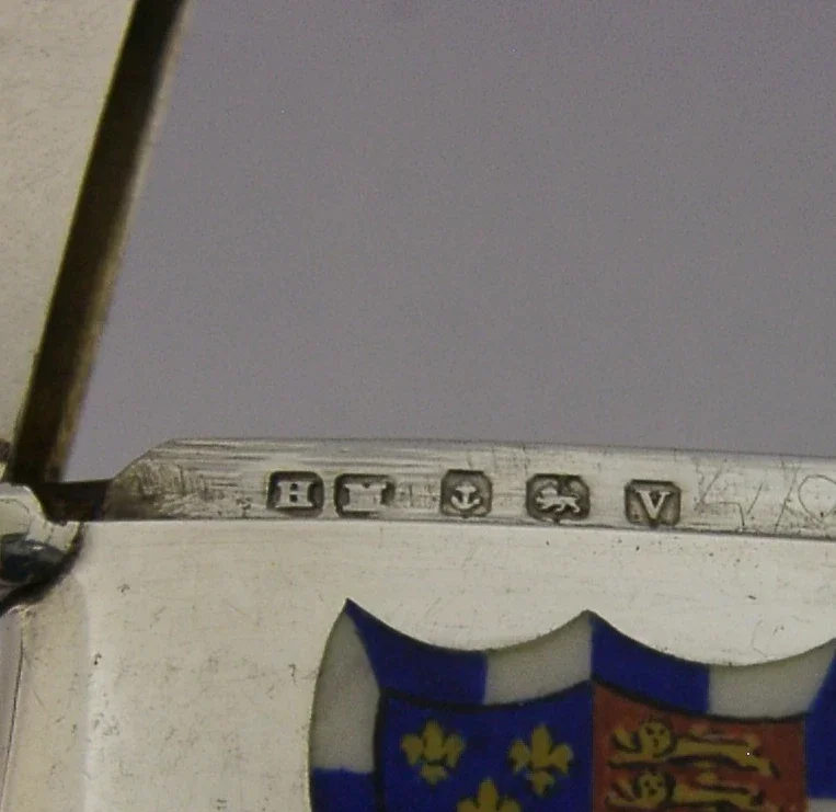 A rare English antique solid sterling silver and enamel vesta case. It is hallmarked for Birmingham 1920 with the maker being Henry Matthews. It has been superbly designed being decorated with the enamelled Coat of Arms of Christ College Cambridge University. It is in very good condition being free from dings splits holes and repairs. The enamel is free from cracks and repairs. It has a strong mechanism and is gilded inside. It measures over 2 inches (5.3cm) tall by over 1.5 inches (4.1cm) wide and weighs 34 grams. A very high quality rare example.