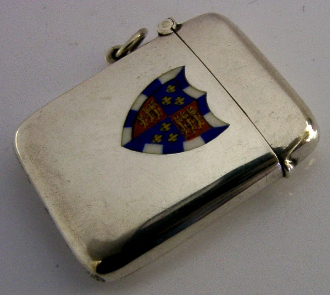 RARE STERLING SILVER ENAMEL CHRIST COLLEGECAMBRIDGE UNI VESTA CASE 1920 ANTIQUE