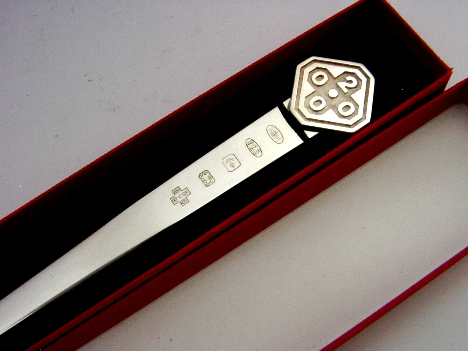 ENGLISH SOLID STERLING SILVER MILLENNIUM LETTER ENVELOPE OPENER 2000 BOXED