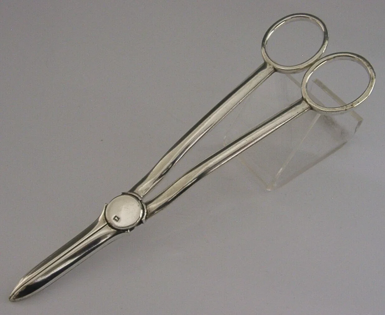 QUALITY DECO ANTIQUE SOLID STERLING SILVER GRAPE SHEARS 1912 SHEFFIELD