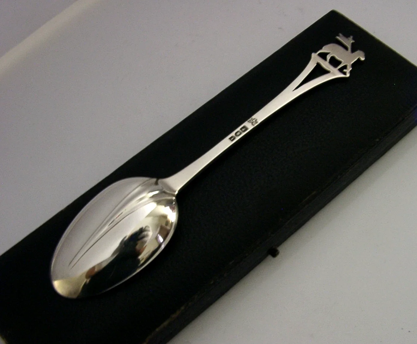 A superb very unusual cased Edwardian English antique solid sterling silver religious spoon. It is hallmarked for London 1906 with the maker being Elkington & Co Ltd. It has been beautifully made with the terminal being in the form of the Lamb of God. It is in super condition being free from dings splits and repairs. It measures over 6.25 inches (16.3cm) long by over 1.25 inches (3.6cm) wide and weighs a respectable 34 grams excluding the case. A very well made interesting piece.