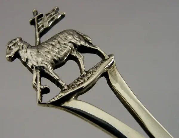 6+ inch ENGLISH SOLID STERLING SILVER LAMB of GOD SPOON 1906 CASED RELIGIOUS