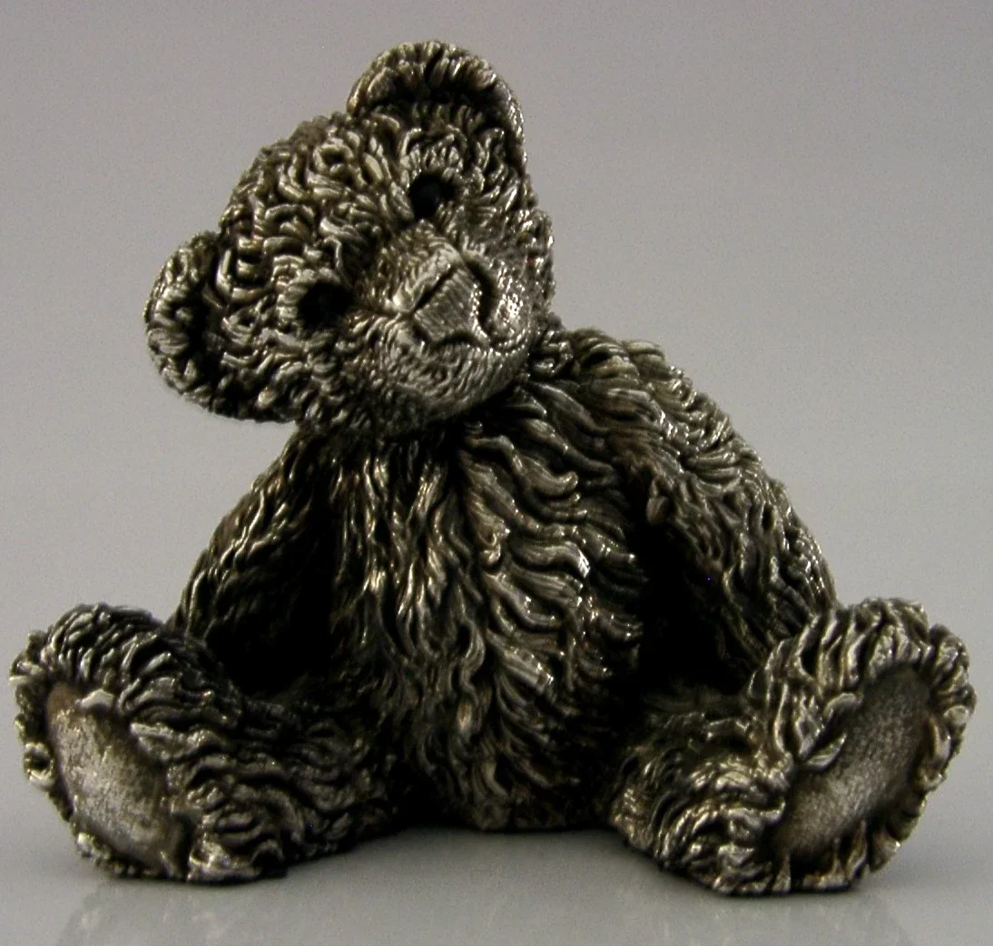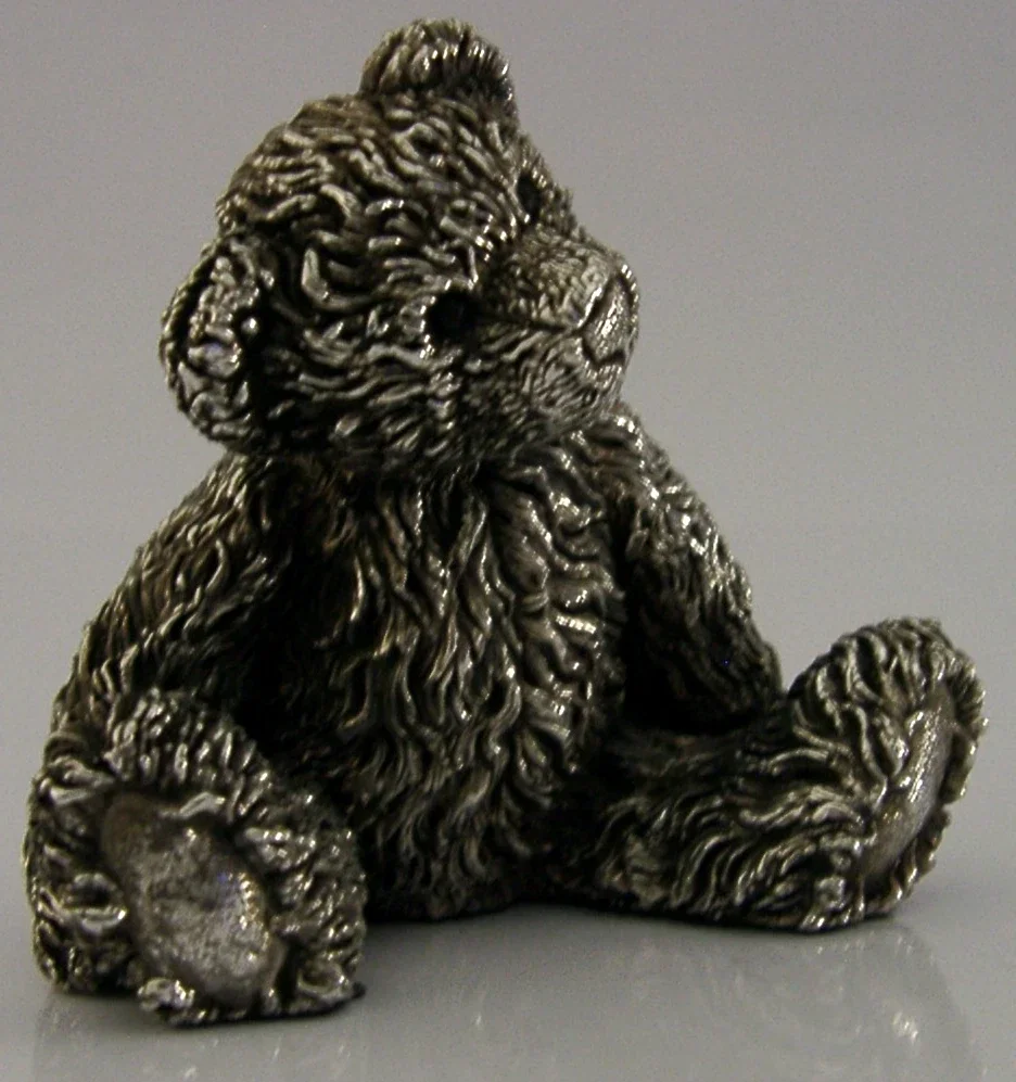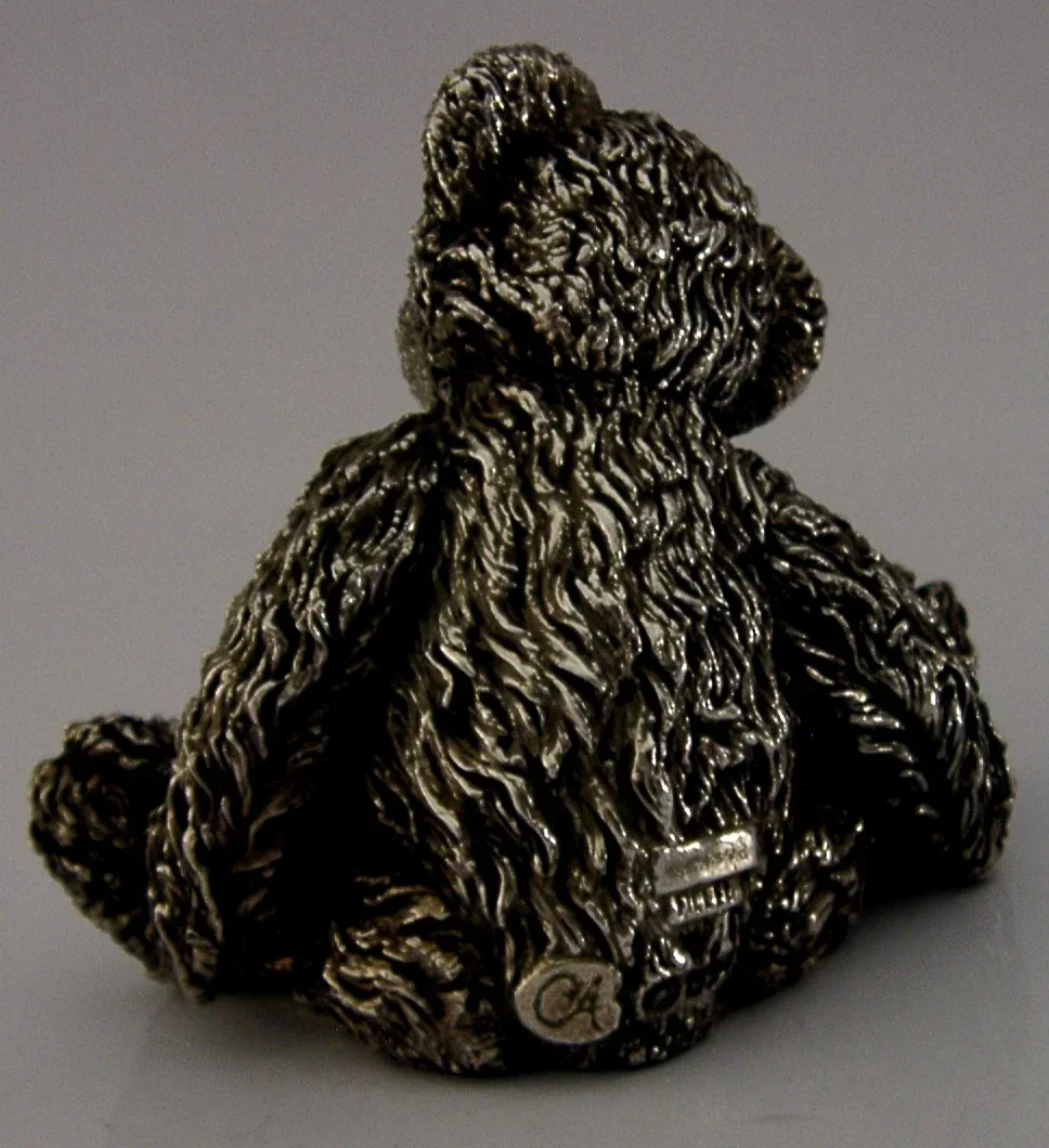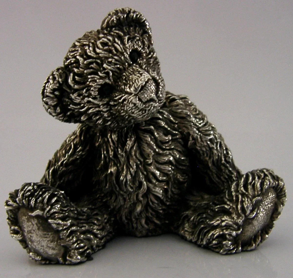 A super quality good sized English sterling silver animal. It is hallmarked for London 2003 with the maker being Comyns of London Ltd. It has been superbly designed being in the form of a teddy bear. It is in superb condition being free from dings splits holes and repairs. It measures approx. 3 inches (7.6cm) tall by 2.75 inches (7cm) across and weighs 114 grams (it will be resin filled). A nice quality piece.