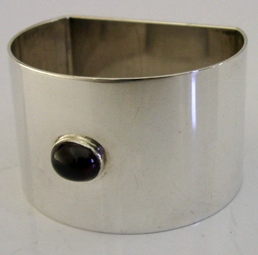 BEAUTIFUL STERLING SILVER RED GEM STONE NAPKIN RING 1988 ARTS & CRAFTS ENGLISH