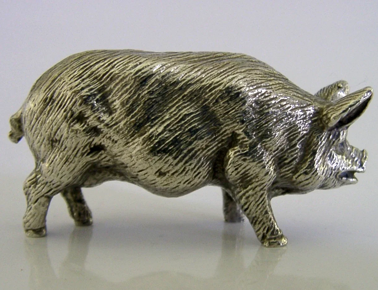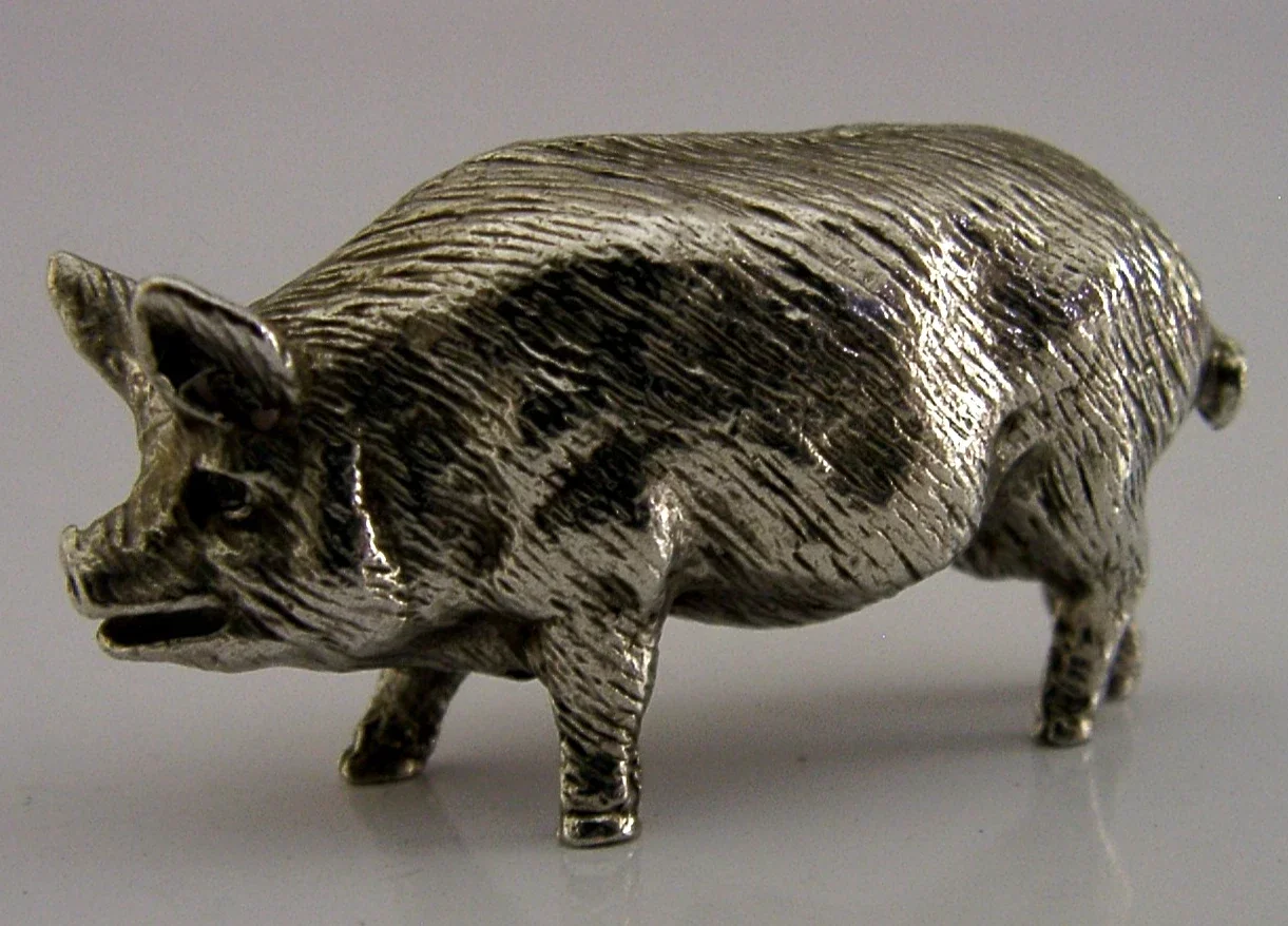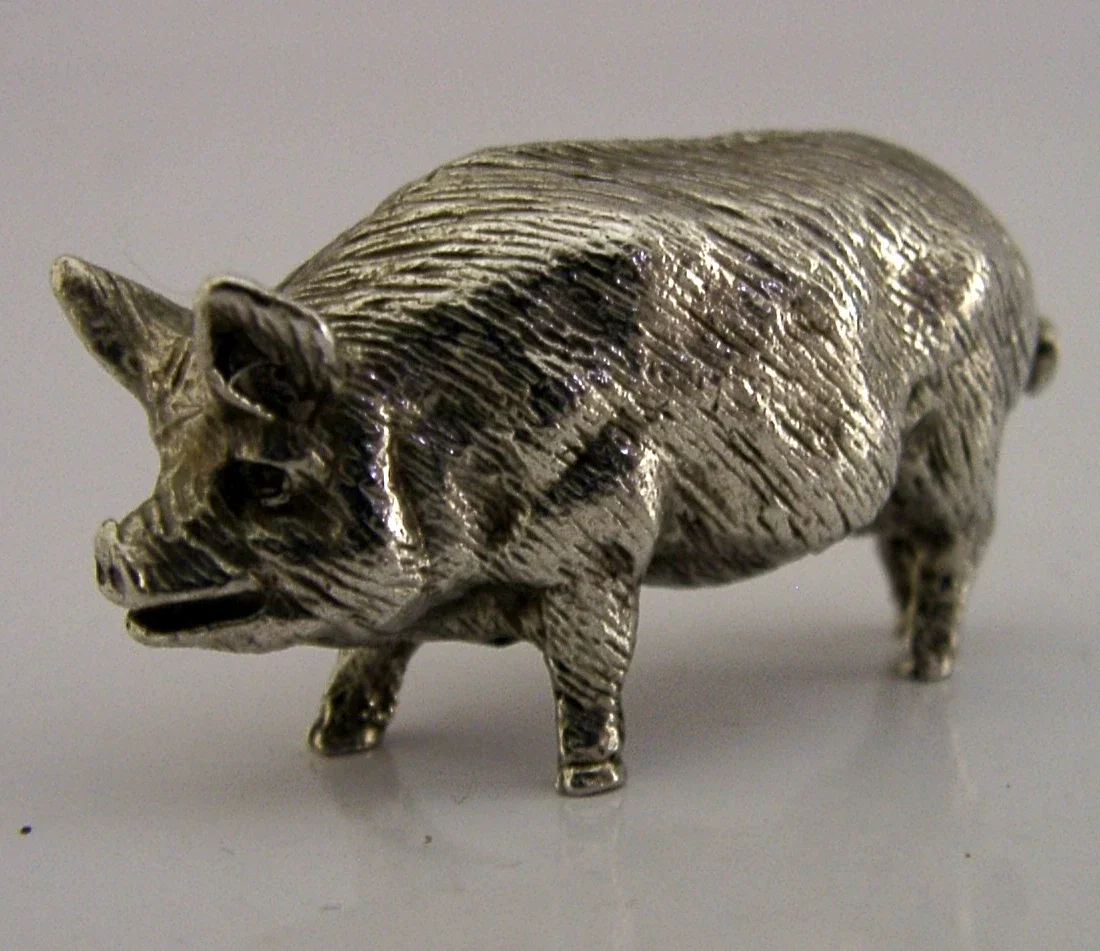 HEAVY 66g ENGLISH SOLID STERLING SILVER PIG FARM ANIMAL FIGURE LONDON 1999
