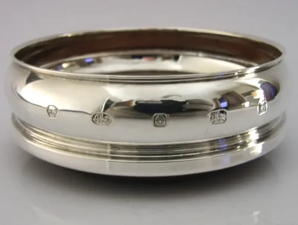 MINT ENGLISH SOLID STERLING SILVER WINE BOTTLE COASTER 2002 BARWARE 88g