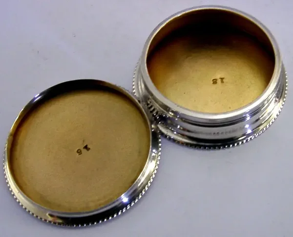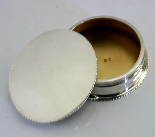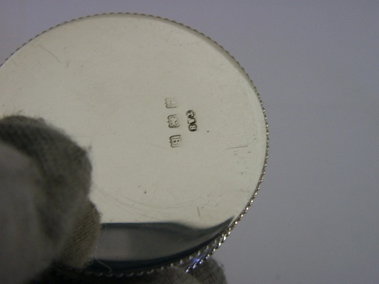 A very nice quality very clean English antique solid sterling silver pill box. It is hallmarked for Birmingham 1926 with the maker being Turner & Simpson Ltd. It has a stylish design and the inside is gilded. It is in super condition being free from dings splits distortions and repairs. The lid fits securely. It measures over 1.5 inches (4cm) across by 0.5 inch (1.2cm) tall and weighs 20 grams. A nice quality example.