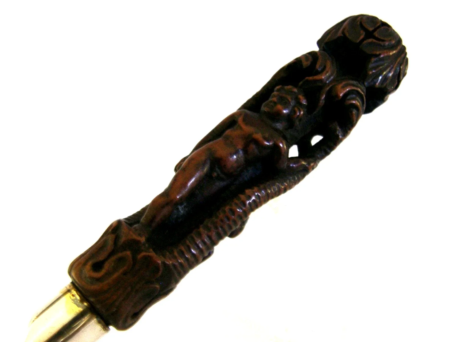 RARE 17th CENTURY CARVED HANDLED STERLING SILVER BUTTER SPREADER 1928