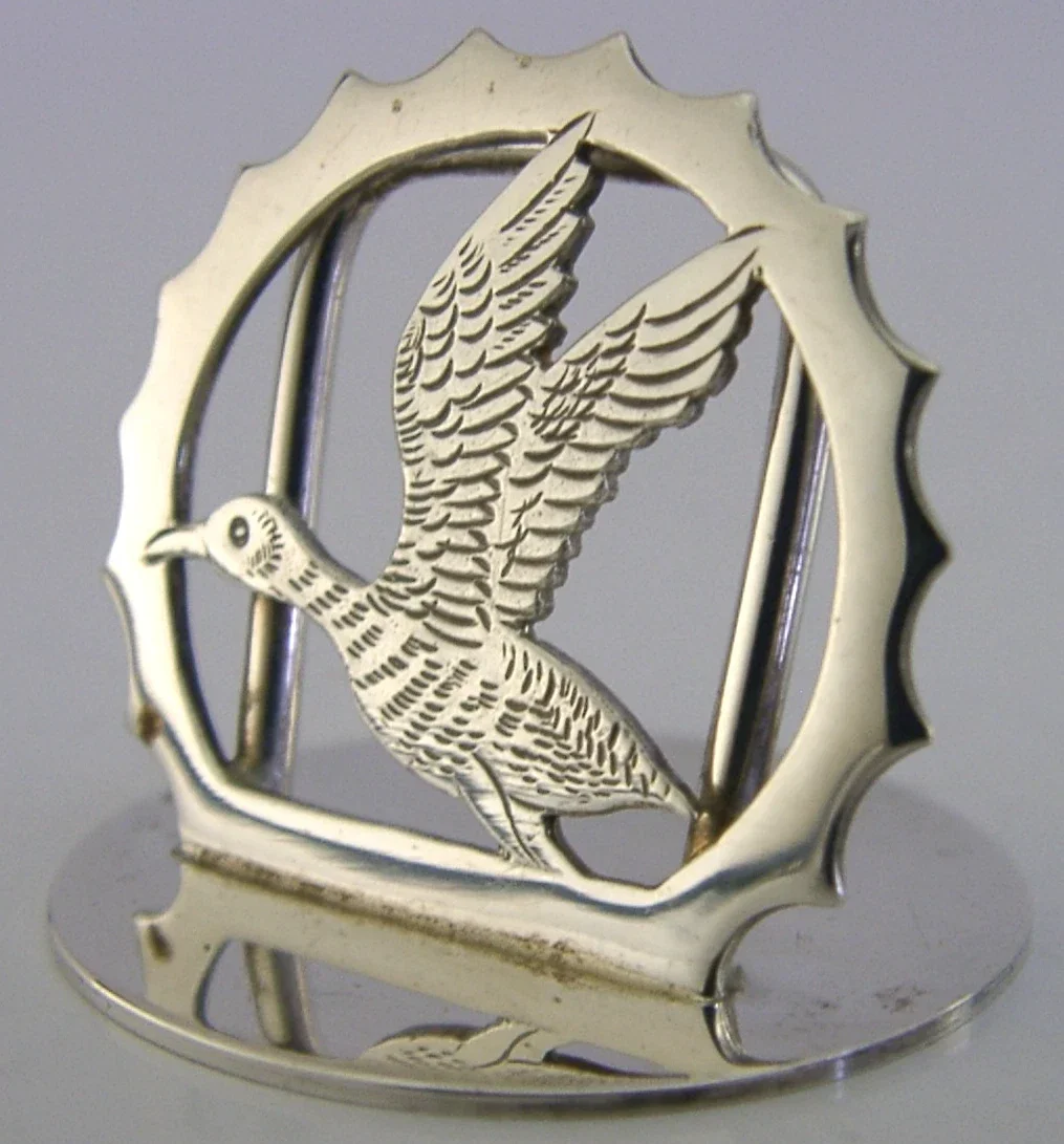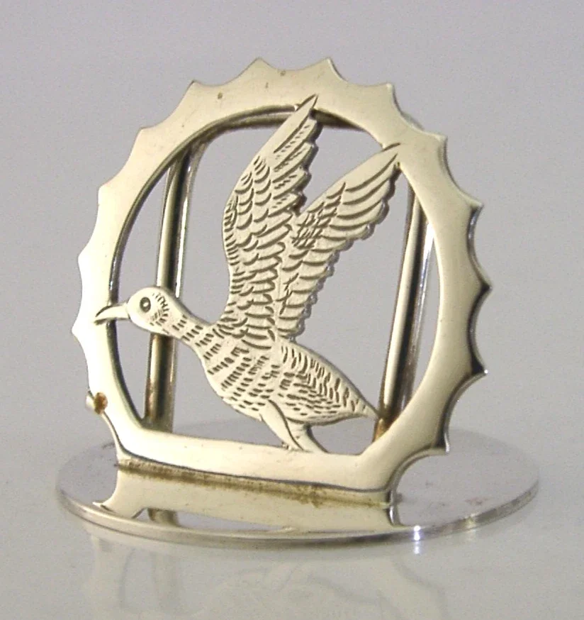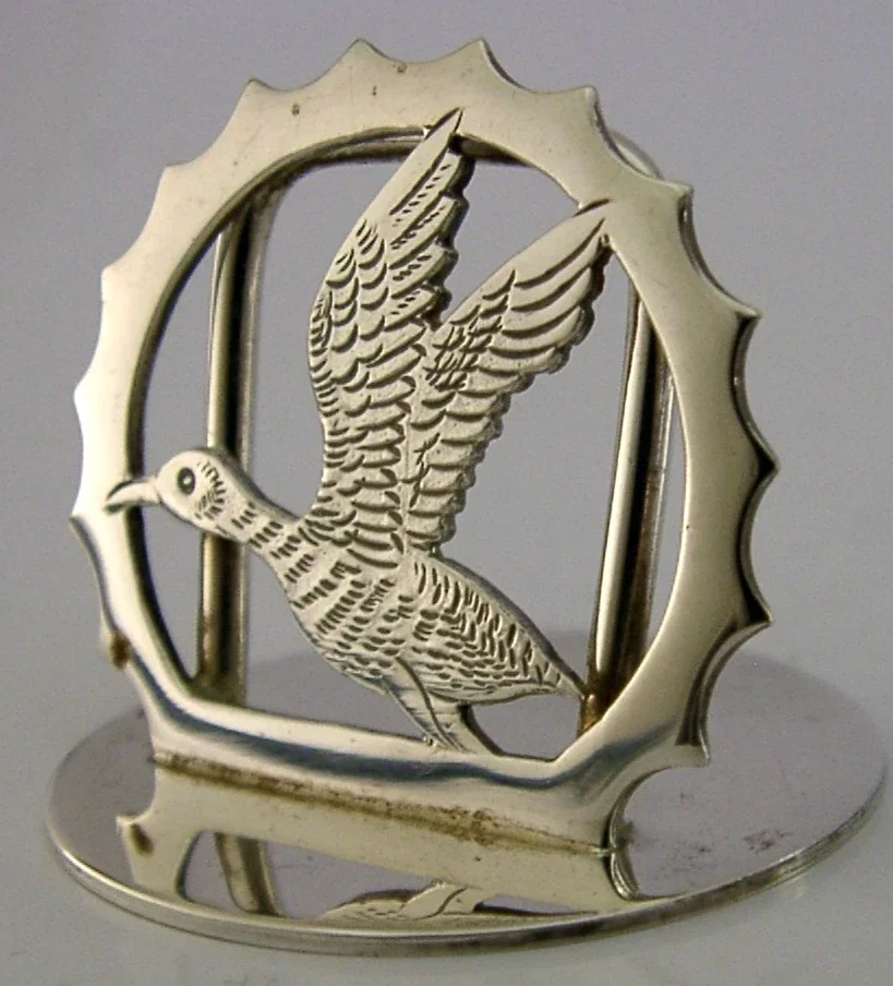 ENGLISH STERLING SILVER DUCK BIRD MENU HOLDER 1993 HUNTING SHOOTING STAMFORD
