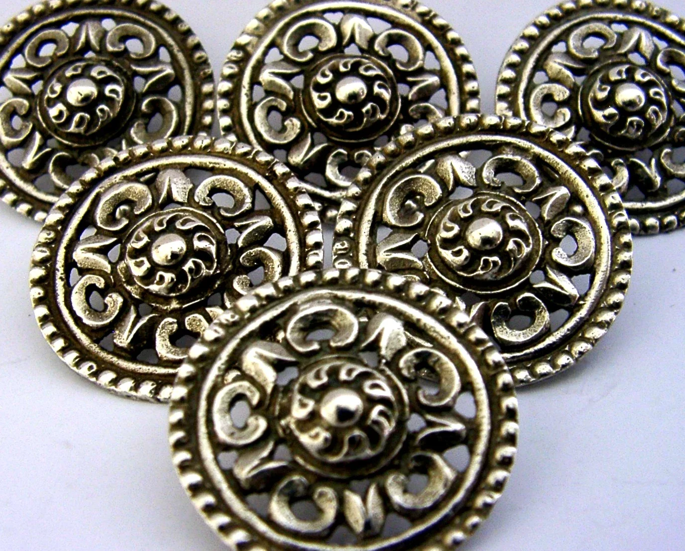 SIX LARGE CELTIC STYLE 800 SOLID SILVER BUTTONS c1900 ANTIQUE 24g
