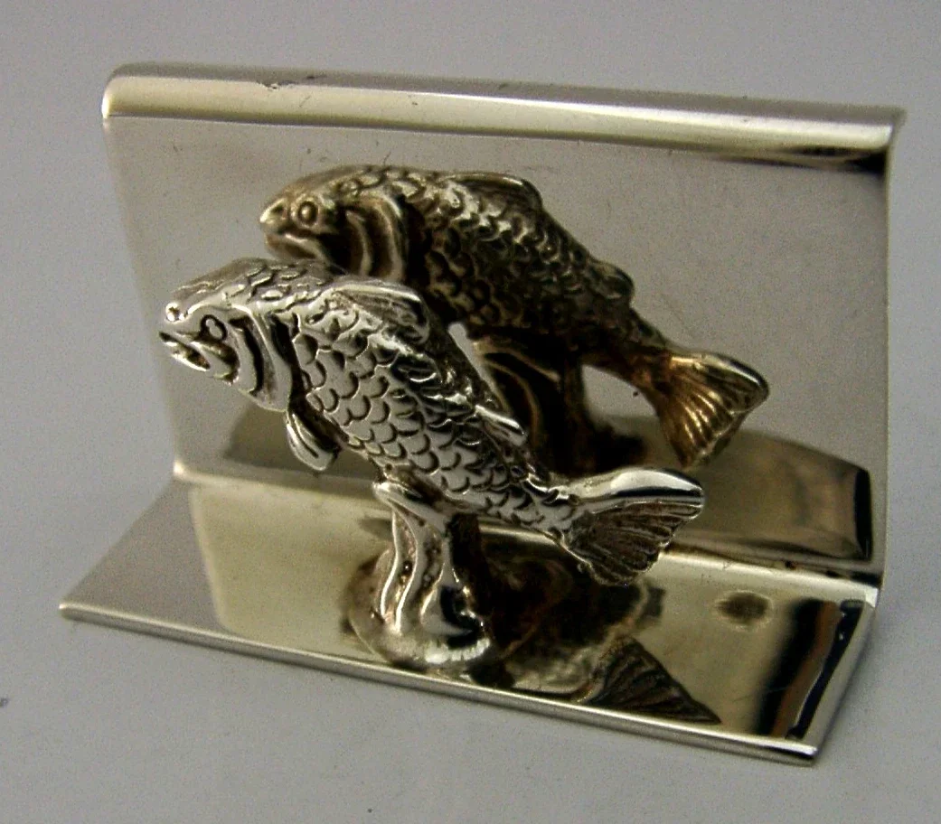 STERLING SILVER FISH MENU HOLDER 2000 SALMON FLY FISHING ANIMAL