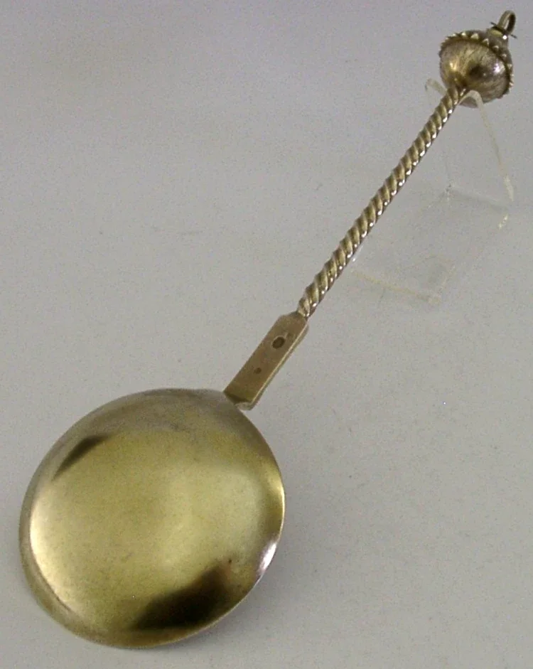 LARGE 104g DANISH SOLID SILVER GILT BAPTISM or SERVING SPOON 1901 ANTIQUE