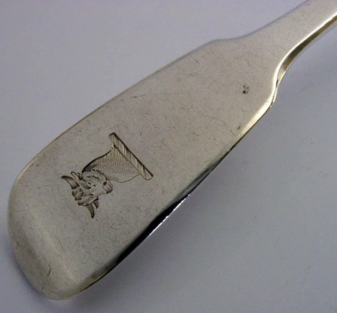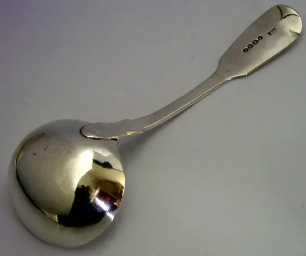 80g STERLING SILVER TURNBULL or OXLEY FAMILY BULL CRESTED SAUCE LADLE 1835