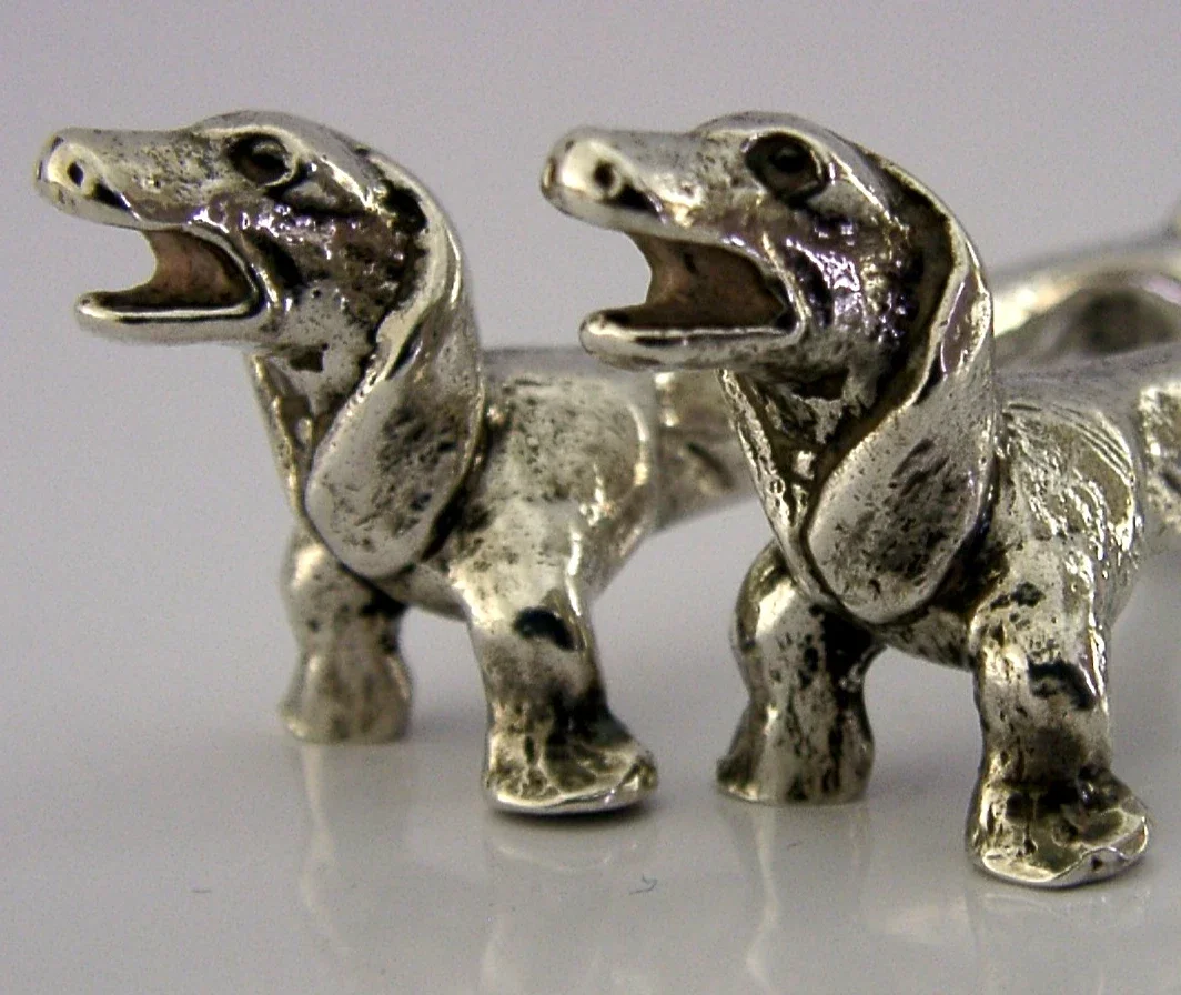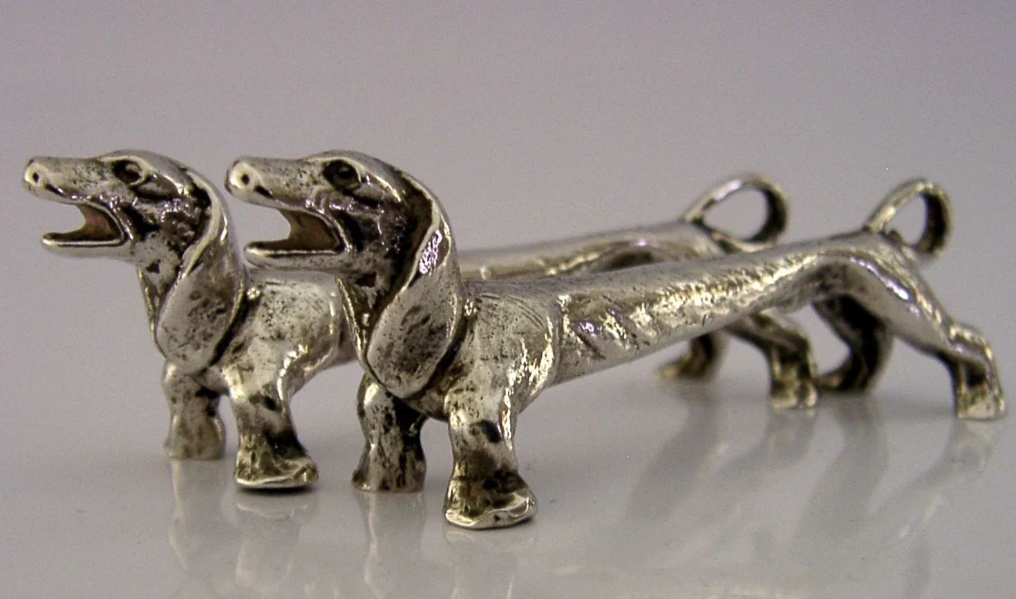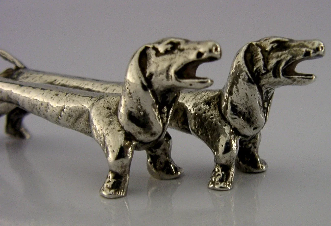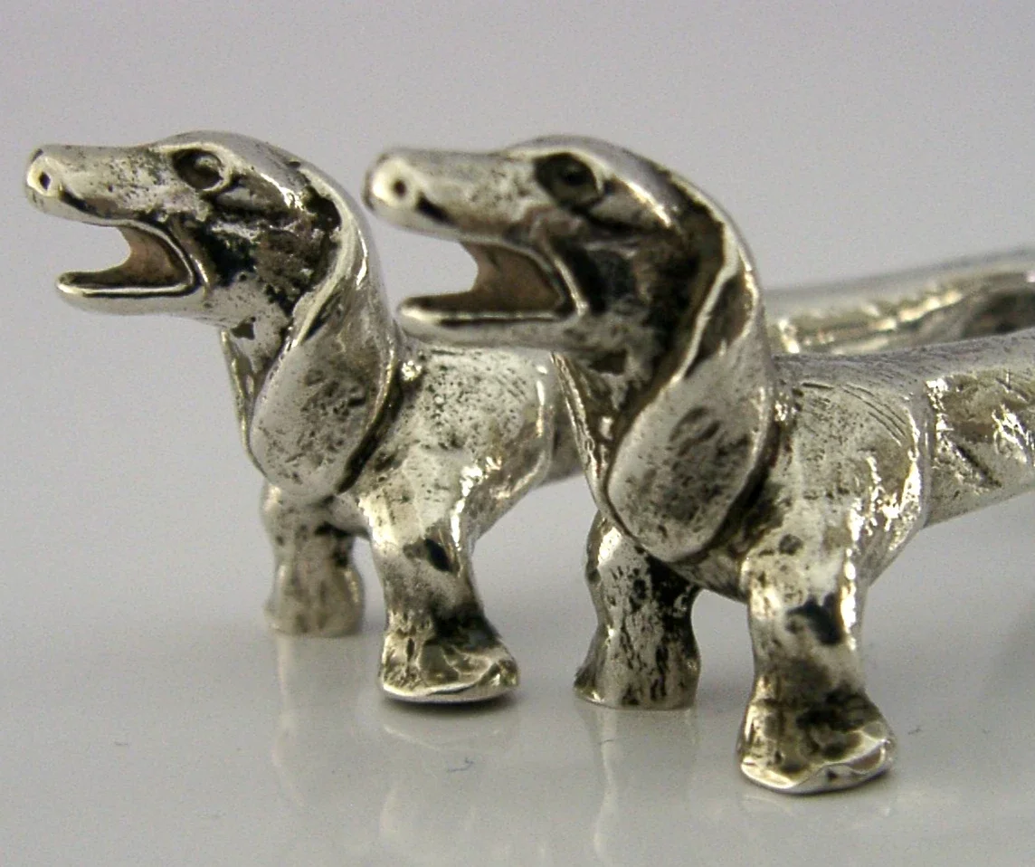 NOVELTY STERLING SILVER DACHSHUND DOG CUTLERY RESTS 1972 ANIMALS ENGLISH 70g