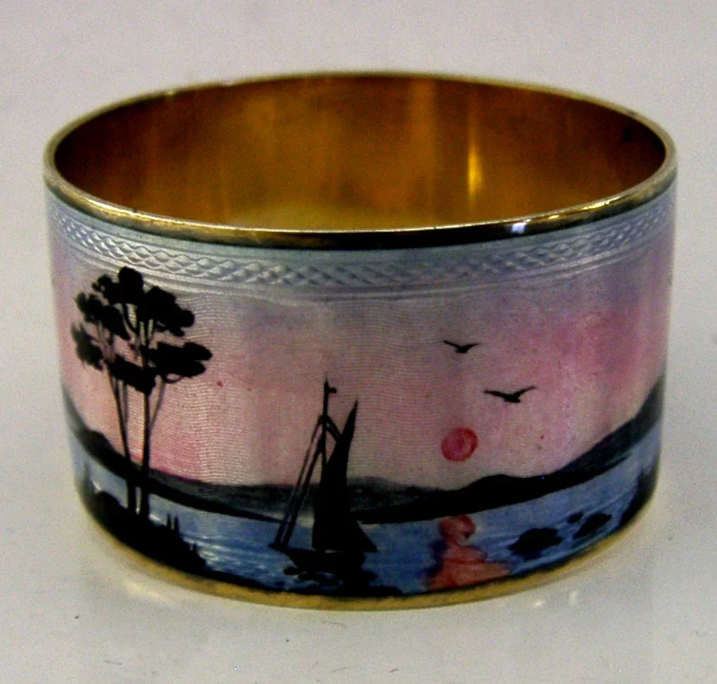NORWEGIAN STERLING SILVER ENAMEL NAPKIN RING 1928 ANTIQUE ENGLISH IMPORT