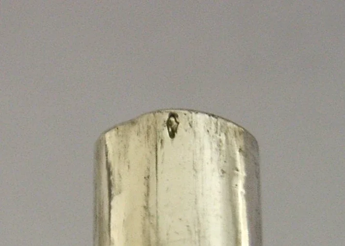A very pretty rare French Charles X solid silver needle case. It is marked with the French hare guarantee mark used 1819 01838 along with a makers mark that is partially struck. It has been beautifully designed and is in superb condition being free from dings splits and repairs. It measures approx. 3.5 inches (8.8cm) tall and weighs 4 grams. A very pretty piece.