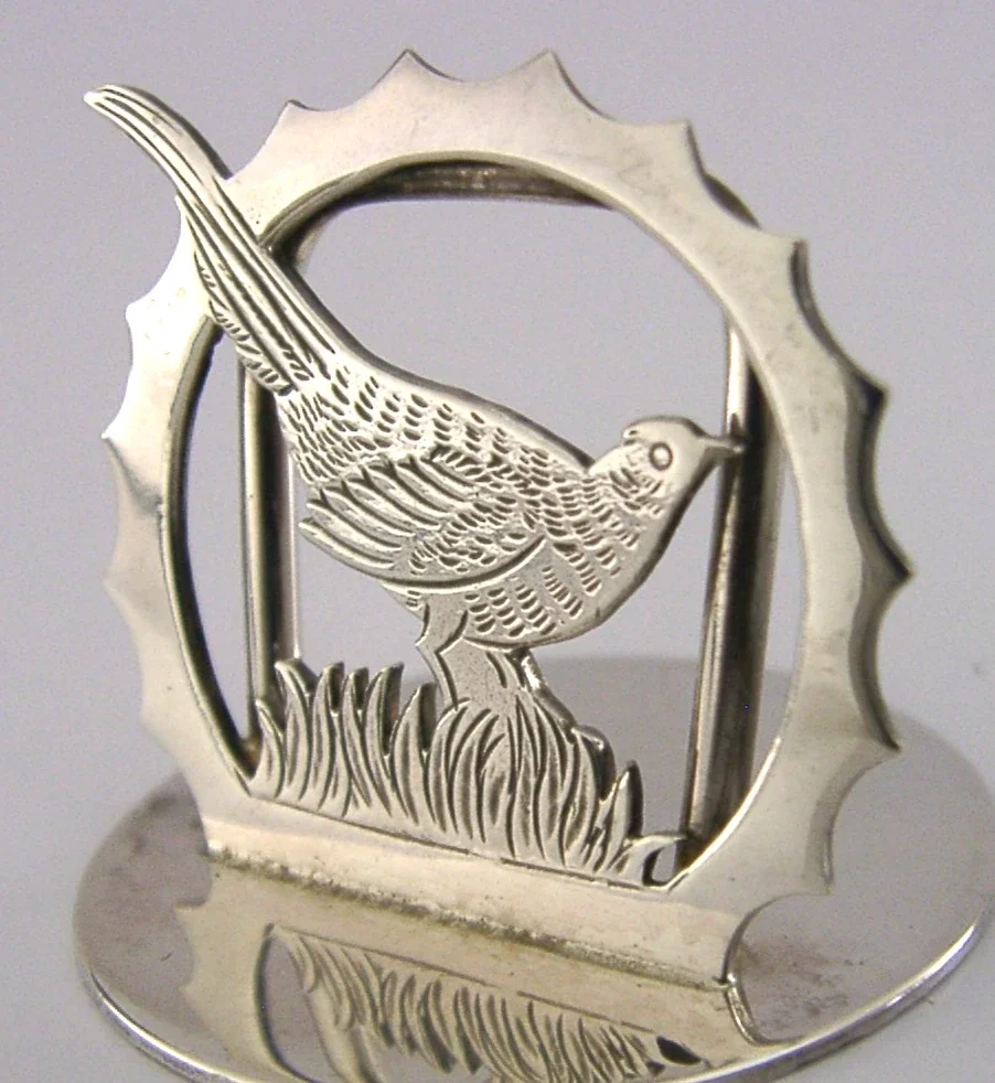 ENGLISH STERLING SILVER PHEASANT BIRD MENU HOLDER 1993 HUNTING