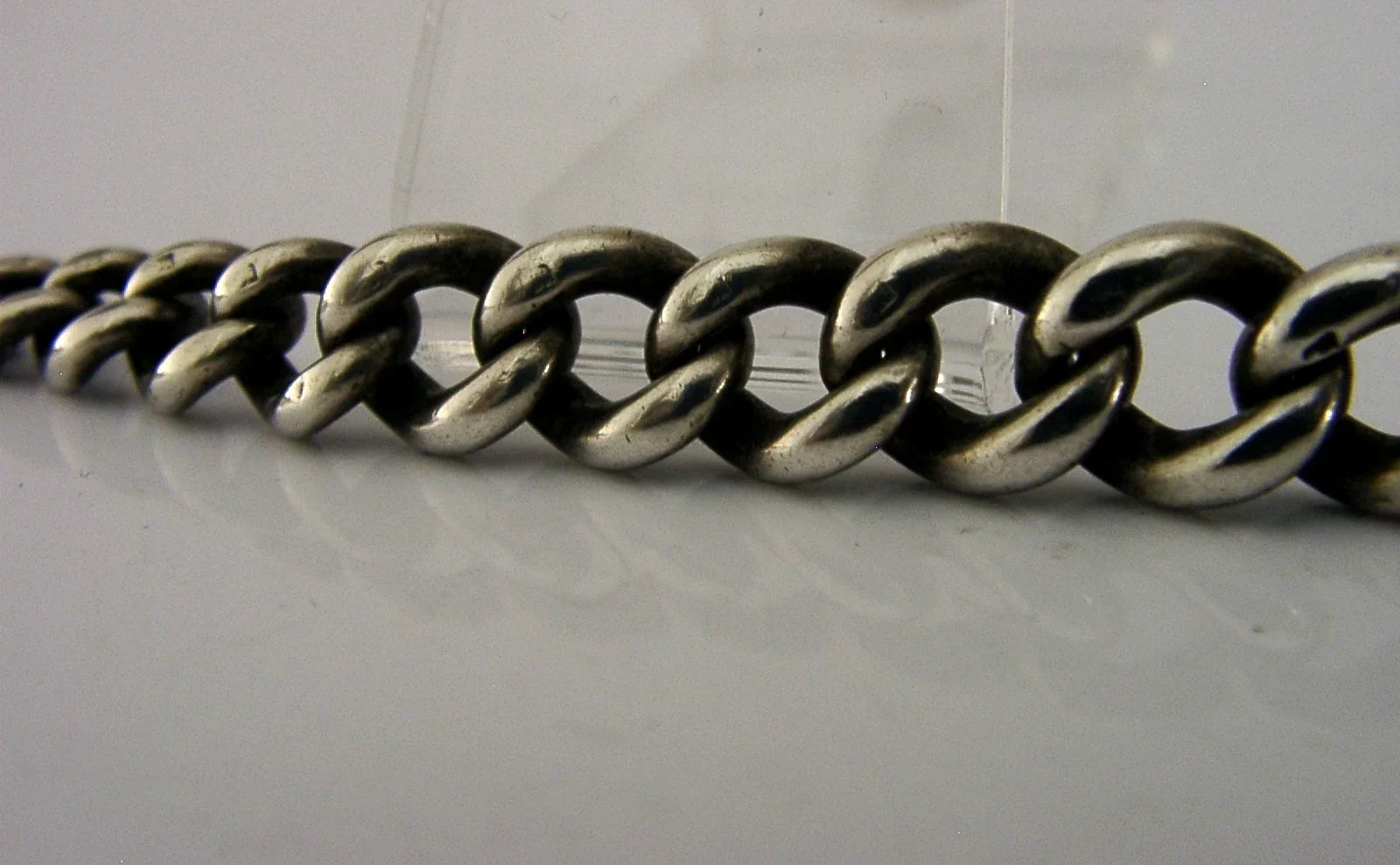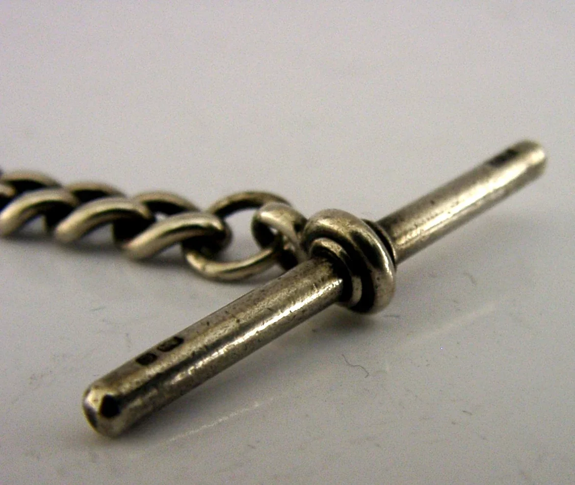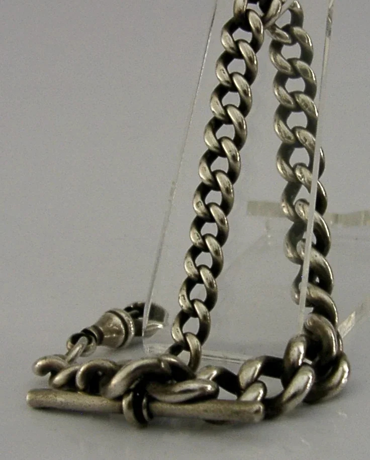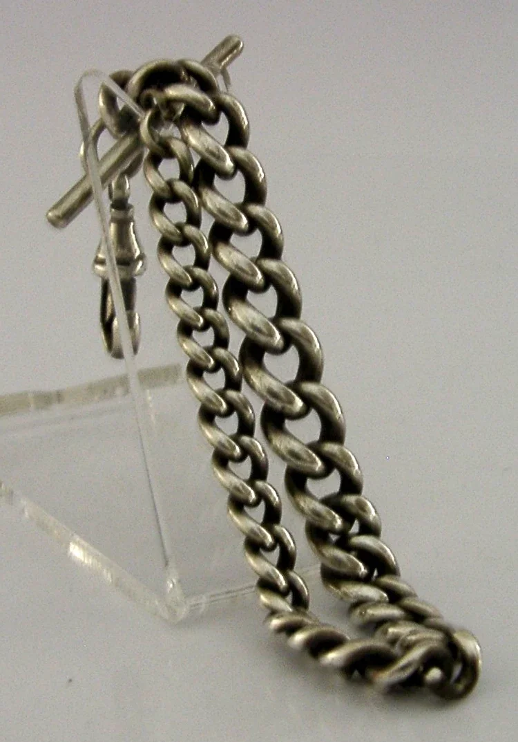 A nice quality English solid sterling silver graduated watch chain. It is hallmarked for Birmingham 1904 with the makers marks being HB. It is superb condition being free from dings splits and repairs. It measures approx. 9 inches (23cm) long and weighs 37 grams. A well made piece.