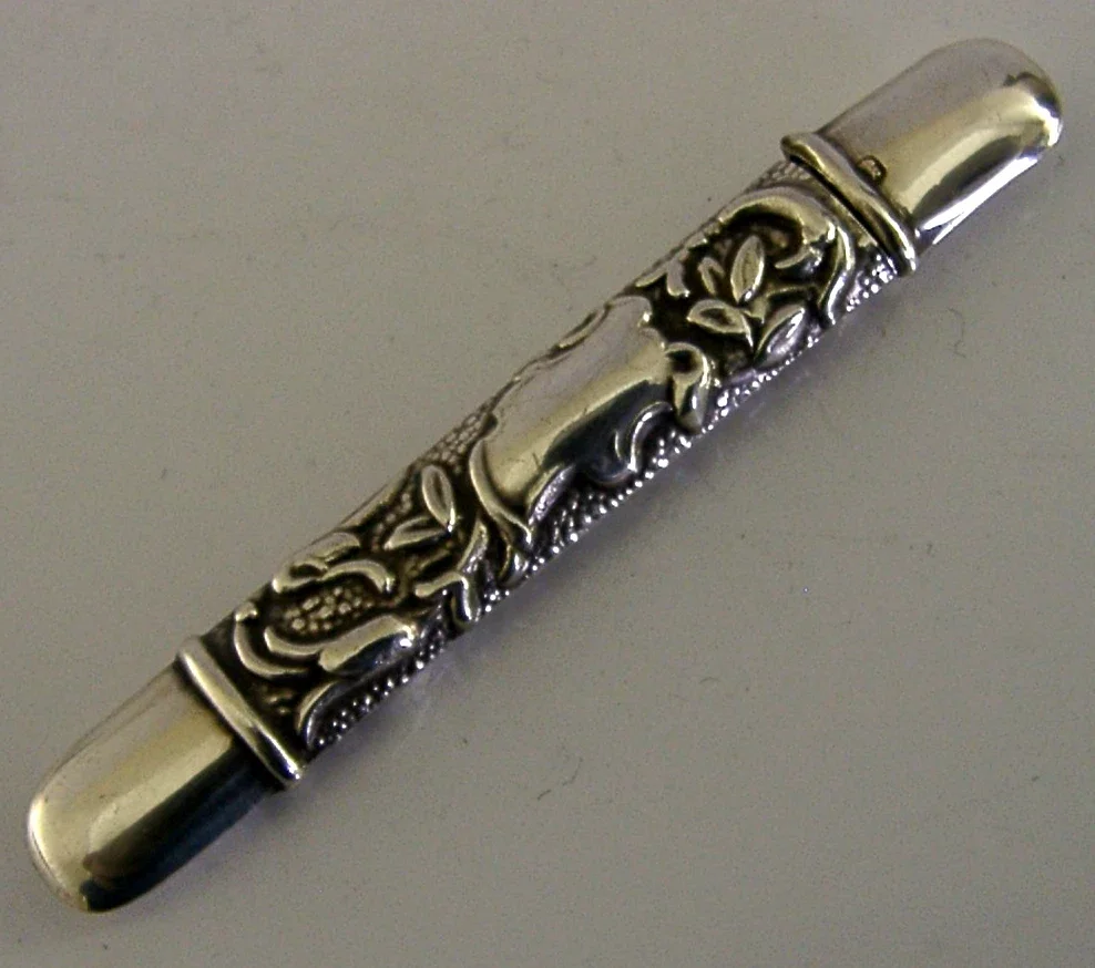 PRETTY ENGLISH STERLING SILVER NEEDLE CASE 1904 NEEDLEWORK SEWING