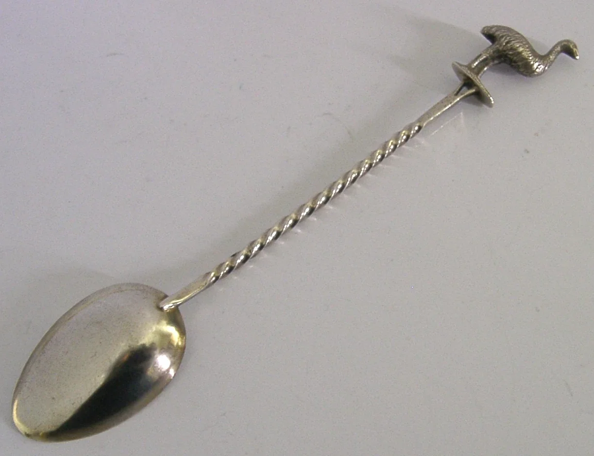 AUSTRALIAN SOLID STERLING SILVER ADELAIDE EMU BIRD SPOON c1900 ANTIQUE