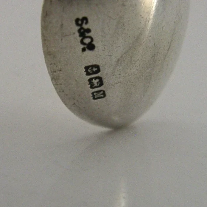 A super quality English art deco sterling silver sporting spoon. It is hallmarked for Birmingham 1936 with the maker being Sydney & Co. It has been superbly designed with the handle being in the form of a devil clutching a golfing caddy. It is in super condition being free from dings splits distortions and repairs. It measures over 4 inches (10.2cm) long by over 0.75 inch (1.9cm) wide and weighs 15 grams. A very nicely designed piece.