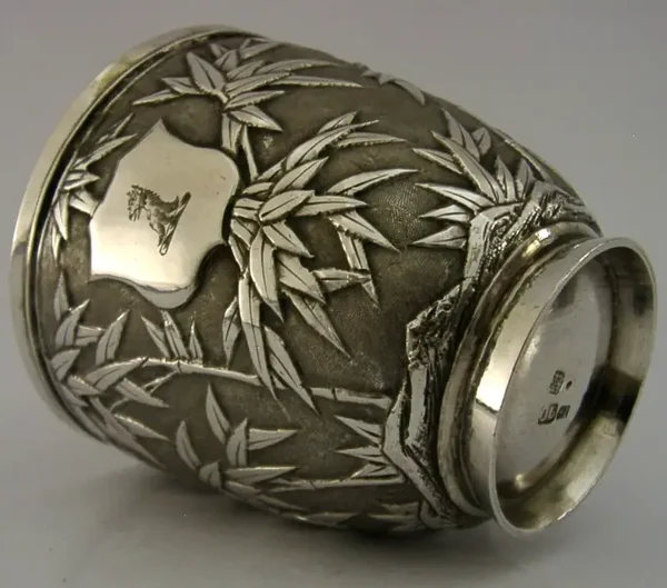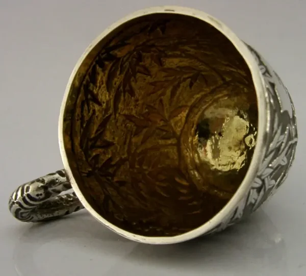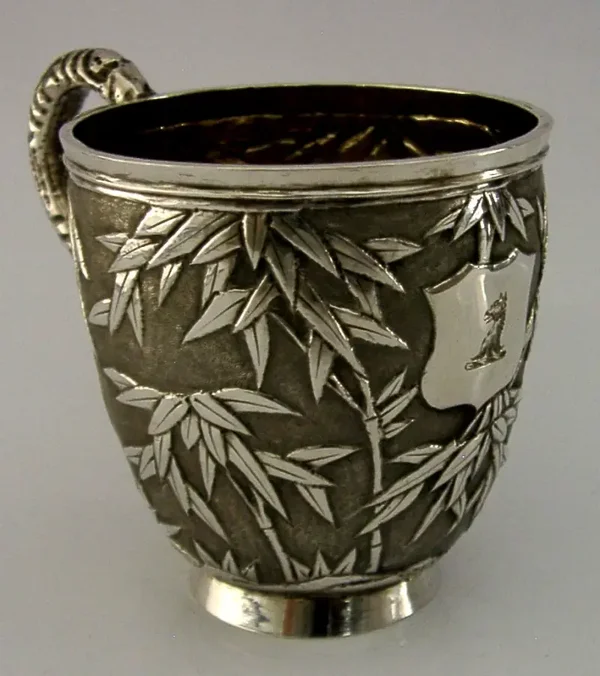 SUPER CHINESE EXPORT SOLID SILVER GRIFFIN FAMILY CREST MUG CUP c1890 ANTIQUE 84g